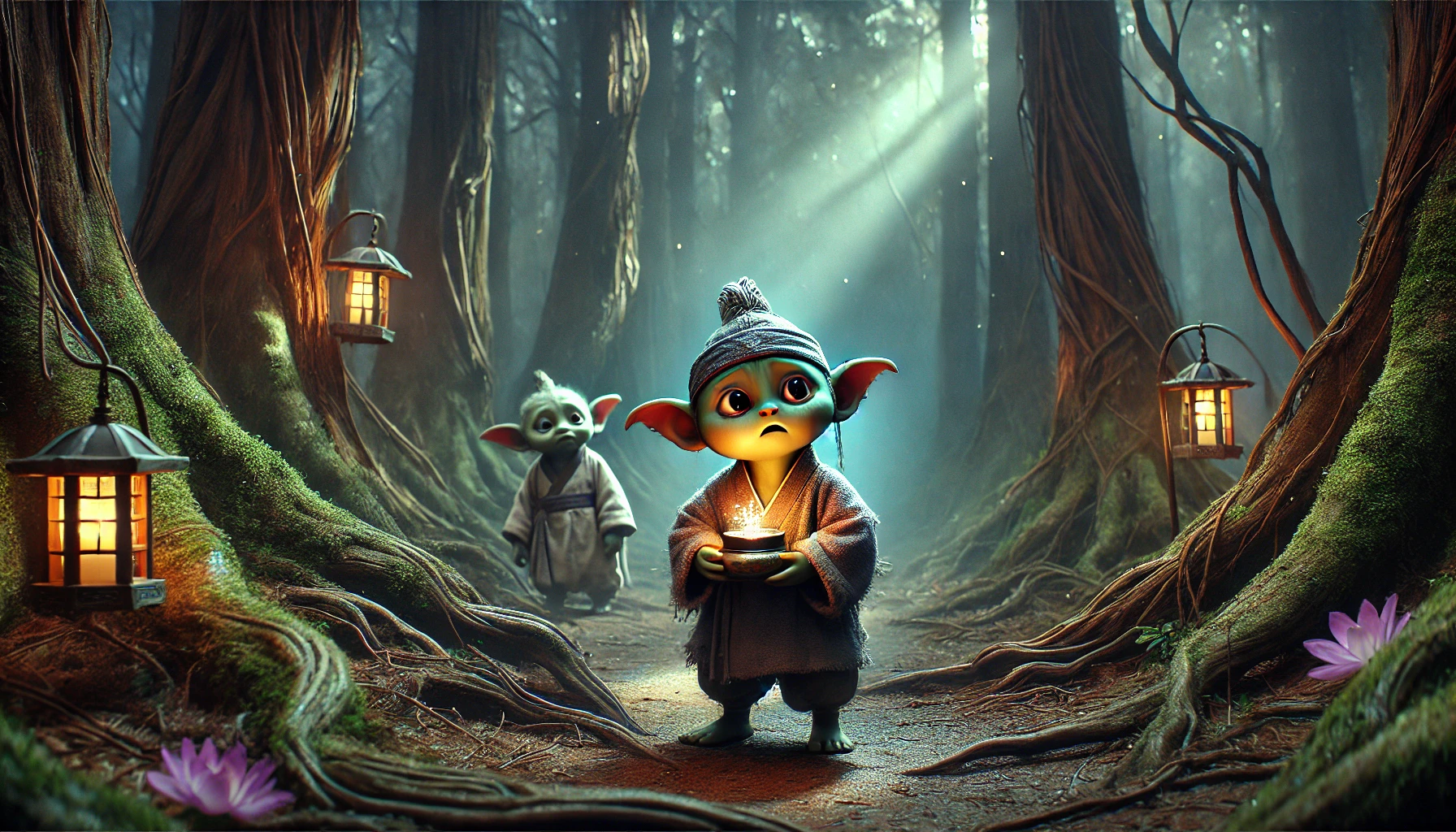 다음 날 아침, 도깨비 마을은 축제의 열기로 가득했습니다. 오색 깃발이 나무 사이에 걸려 있고, 다양한 음식 냄새가 숲 전체에 퍼졌습니다. 모든 도깨비들이 각자의 제일 좋은 옷을 입고 공터로 모여들었습니다.