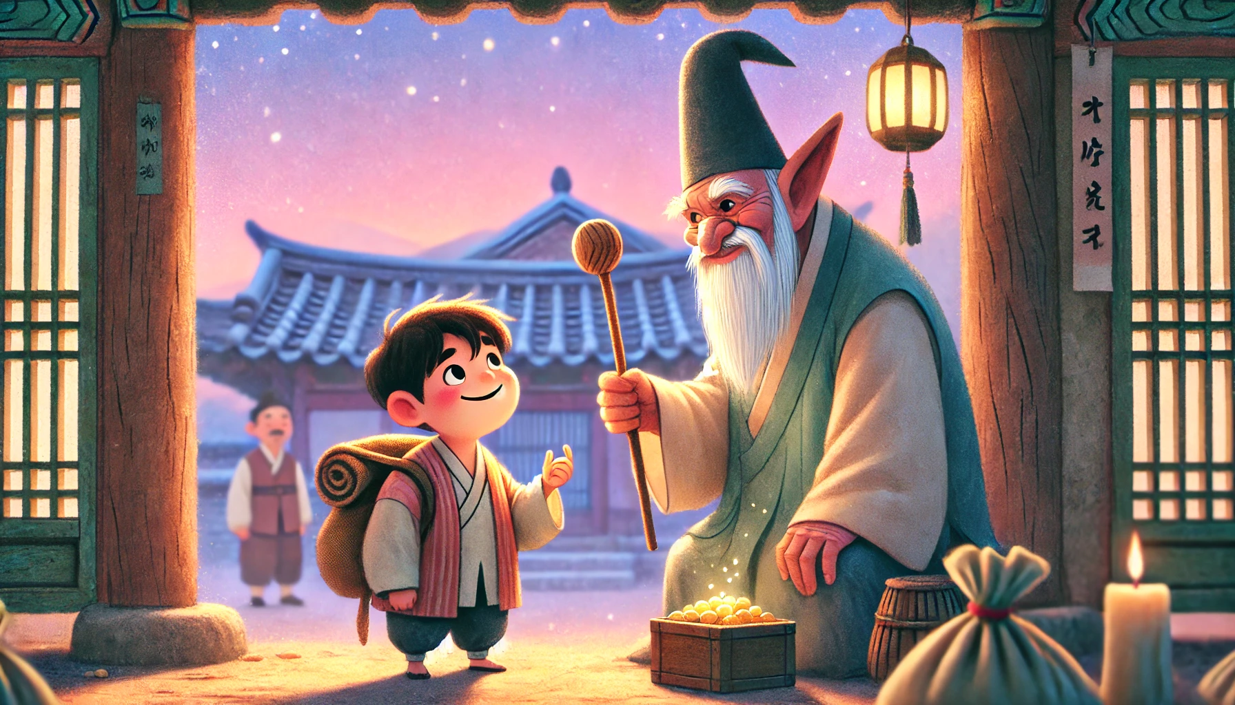 복동은 깊이 절했습니다. "형님, 정말 감사합니다. 덕분에 제 인생이 완전히 바뀌었어요!" 도깨비는 복동의 어깨를 두드리며 웃었습니다. "아직 시작일 뿐이야. 너한테는 더 큰 복이 기다리고 있단다. 계속 착하게 살아. 그럼 진짜 기적 같은 일이 생길 거야!"