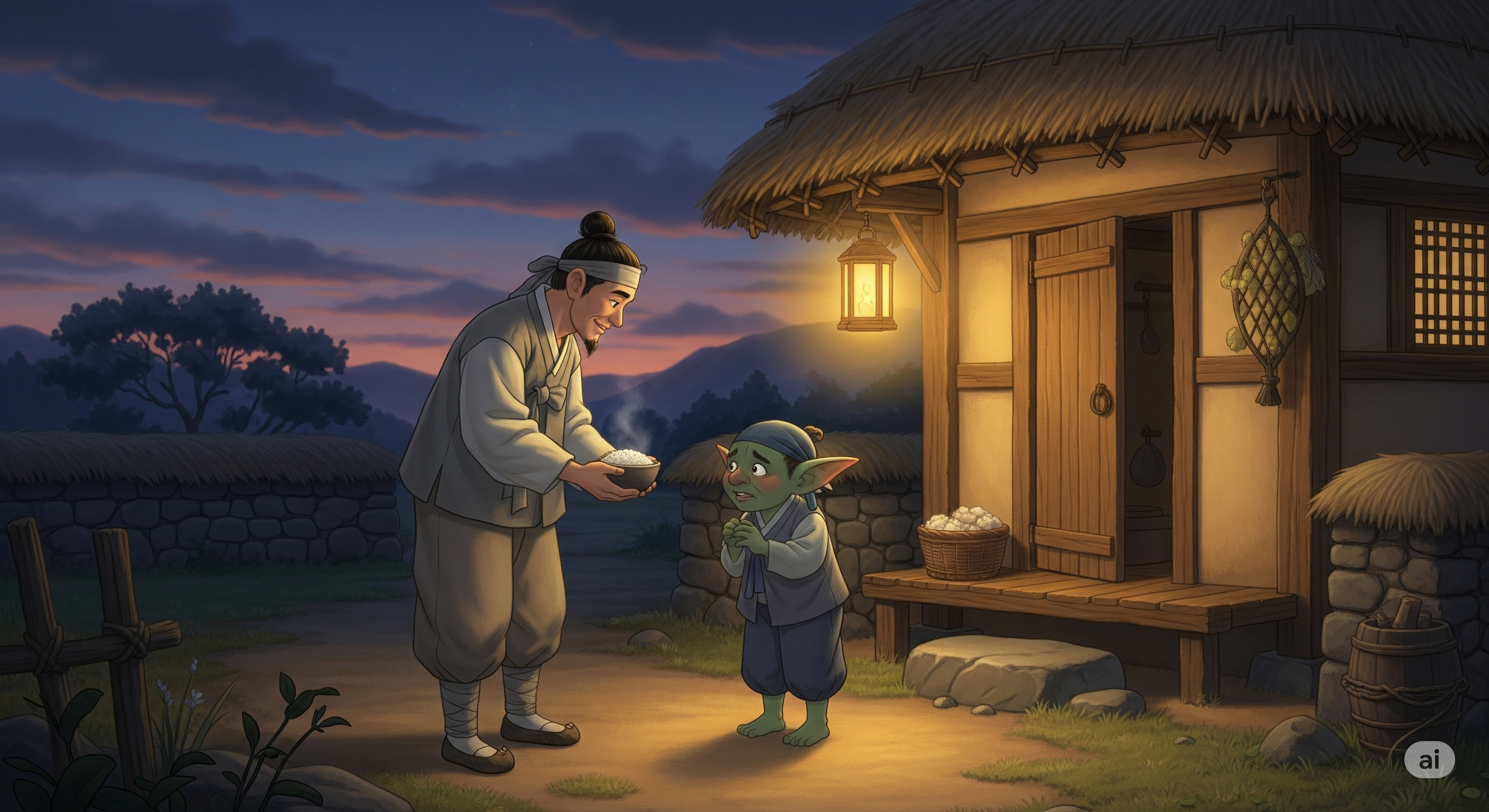 그렇게 가난한 농부 김서방과 외로운 도깨비 산깨비의 우정이 시작되었습니다. 두 사람은 그날 밤 새벽까지 이야기를 나누었어요. 서로의 외로움을 나누고, 꿈을 이야기하고, 때로는 함께 웃기도 했습니다.