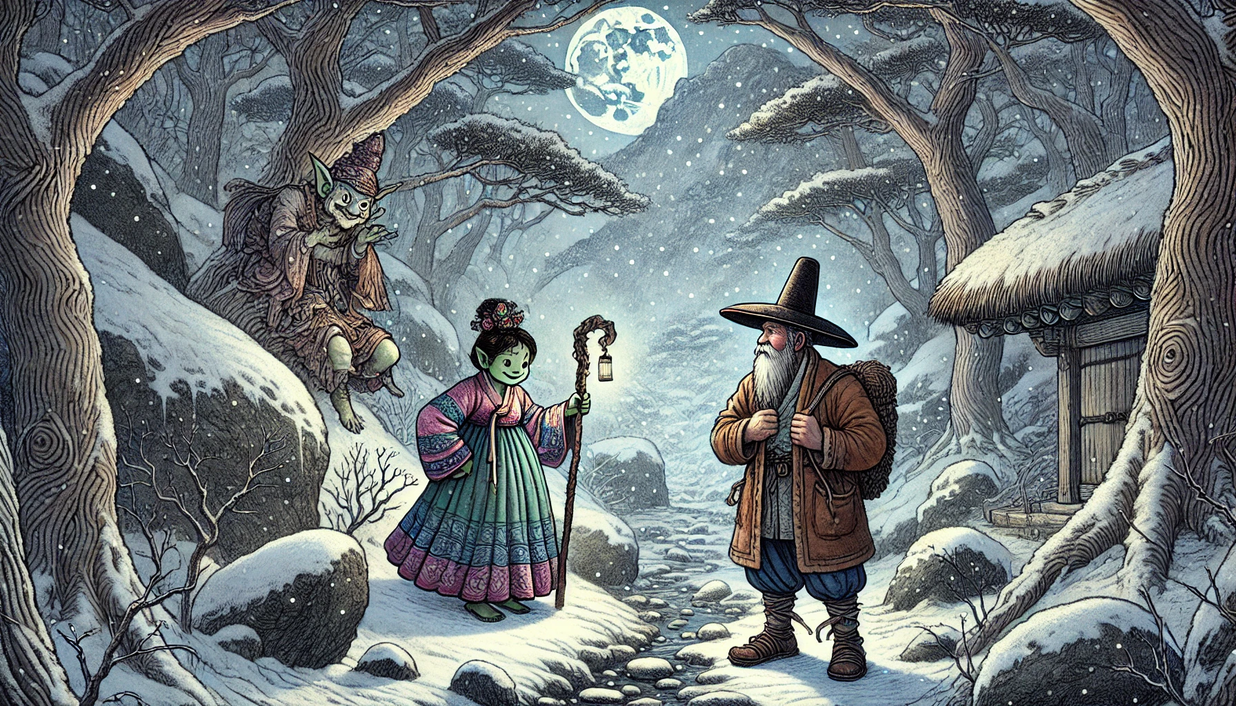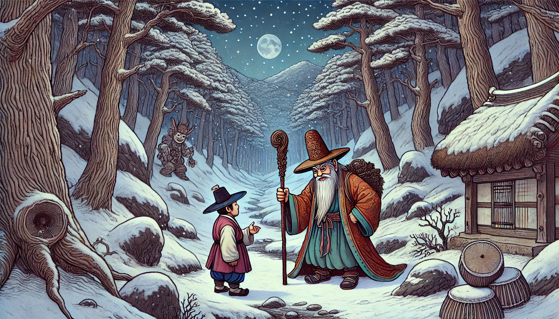 나무꾼은 놀랐지만, 이상하게도 무섭지는 않았습니다. 오히려 도깨비의 표정이 친근해 보였습니다.