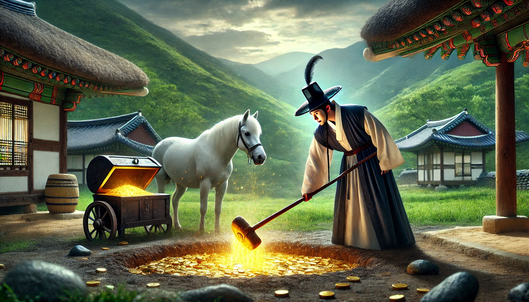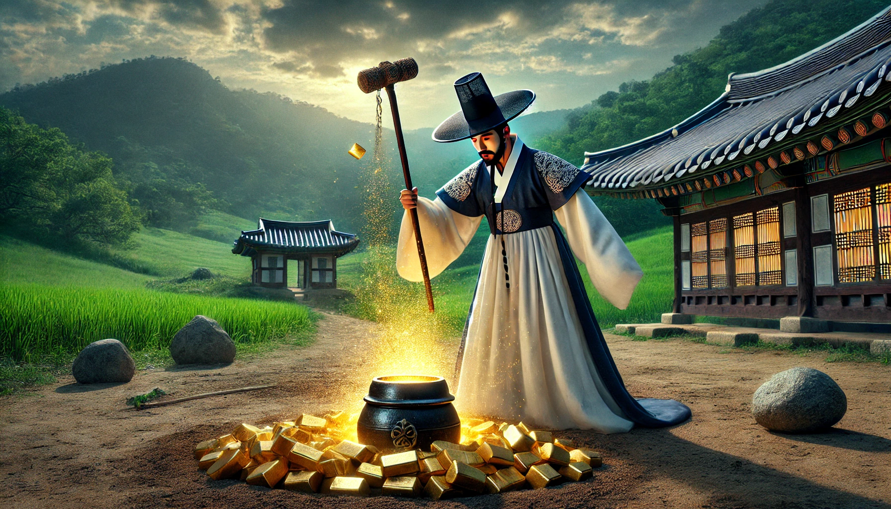 "도깨비방망이로 진짜 금을 뽑아낸 조선시대 농부의 충격적인 실제 경험담! 하지만 마지막 결말은... 여러분의 예상을 완전히 뒤집을 거예요. 욕심이 부른 참혹한 결말까지, 실제 기록으로 남아있는 도깨비와의 거래 전말을 공개합니다!"