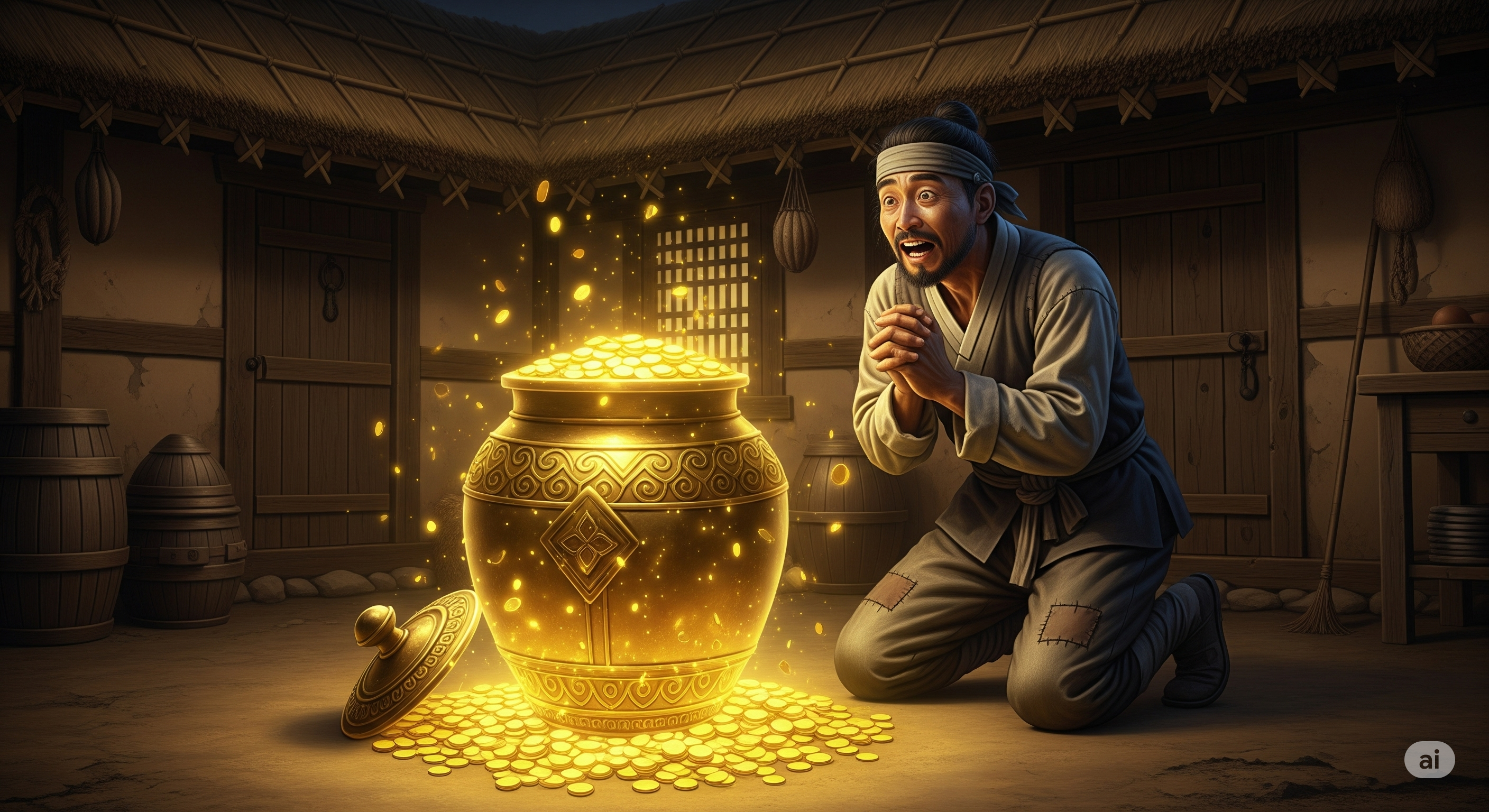 가난한 농부에게 갑자기 찾아온 황금 항아리! "이 항아리만 있으면 평생 부자로 살 수 있어요!" 하지만 농부의 선택은 모든 사람을 놀라게 했는데... 도깨비가 숨겨둔 진짜 비밀과 농부가 보여준 놀라운 지혜! 돈보다 소중한 것이 무엇인지 깨닫게 하는 감동적인 조선시대 이야기를 들려드립니다.