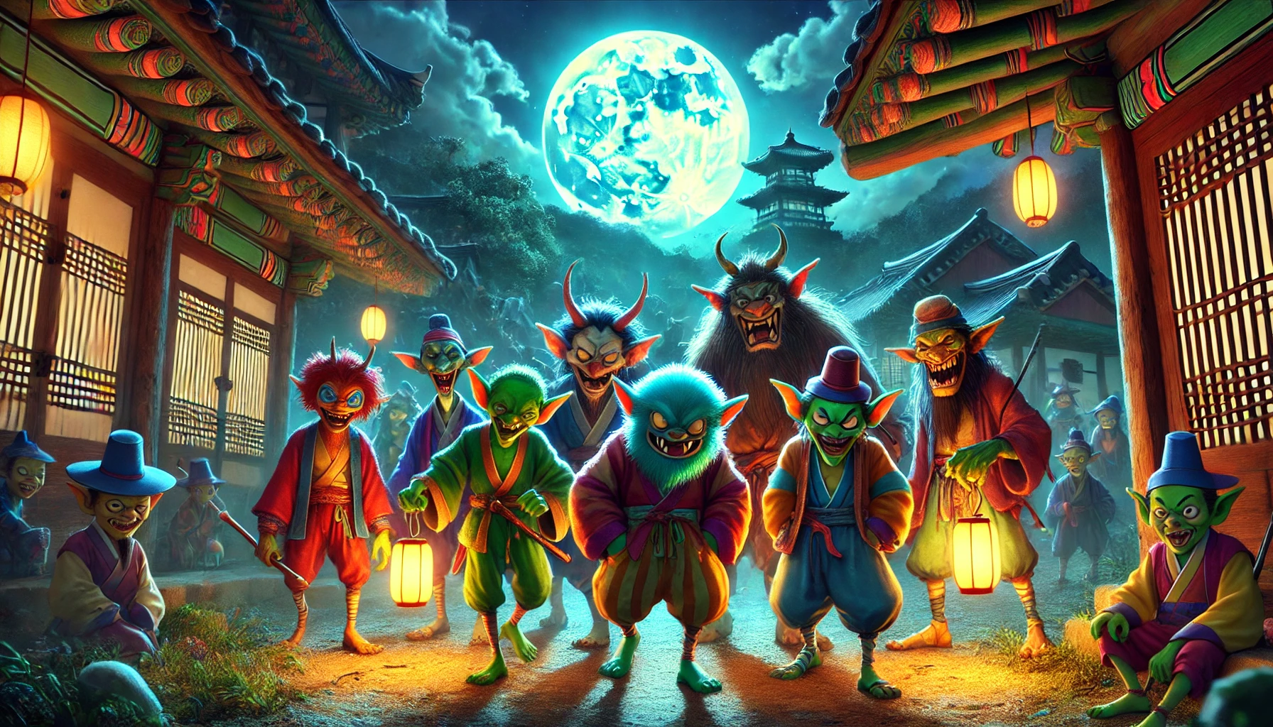 어느 보름달이 밝은 밤, 도깨비들은 마침내 모습을 드러내기로 결정했습니다. 그들은 마을 광장에 나타나 큰 소리로 외쳤습니다.