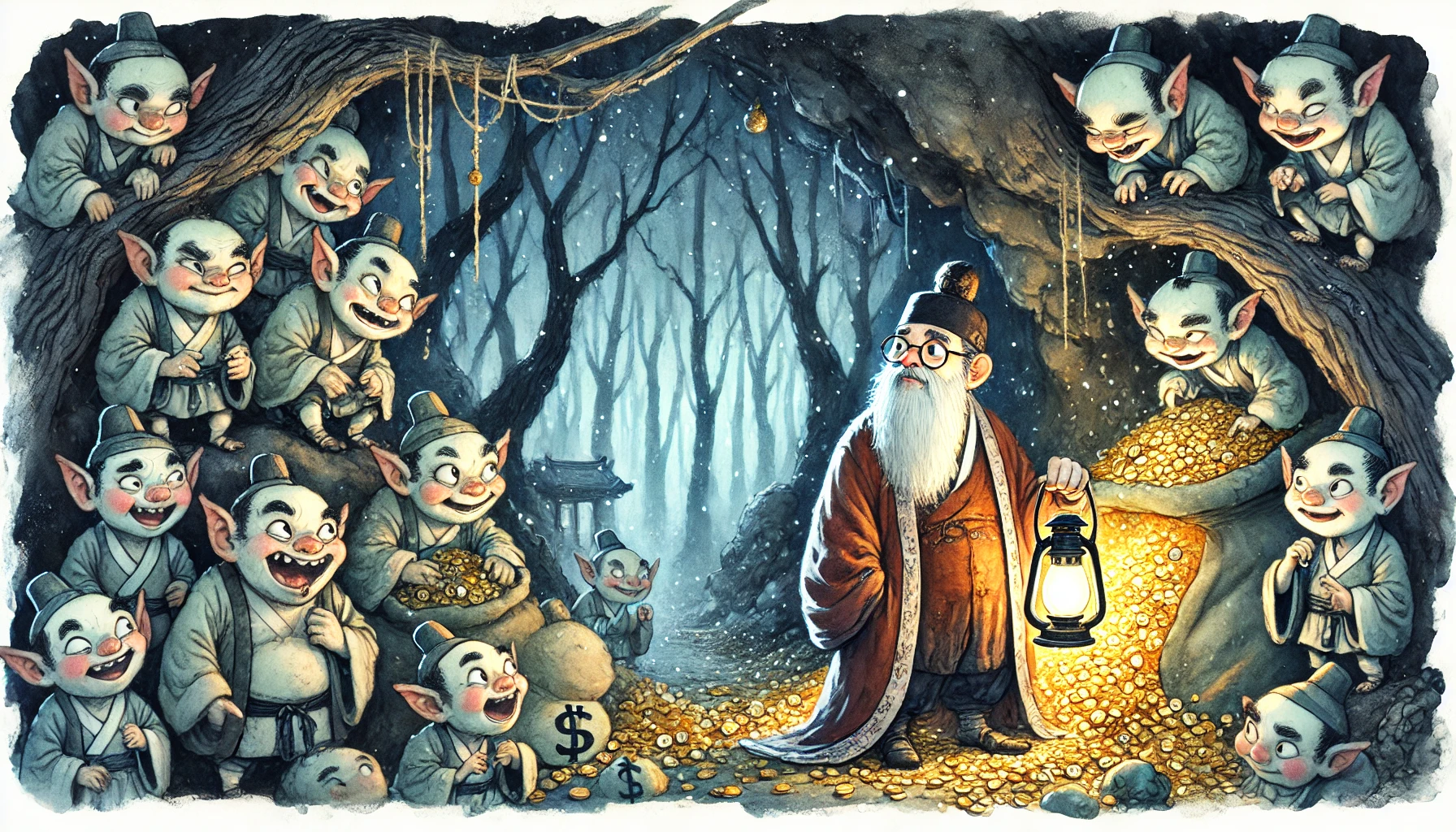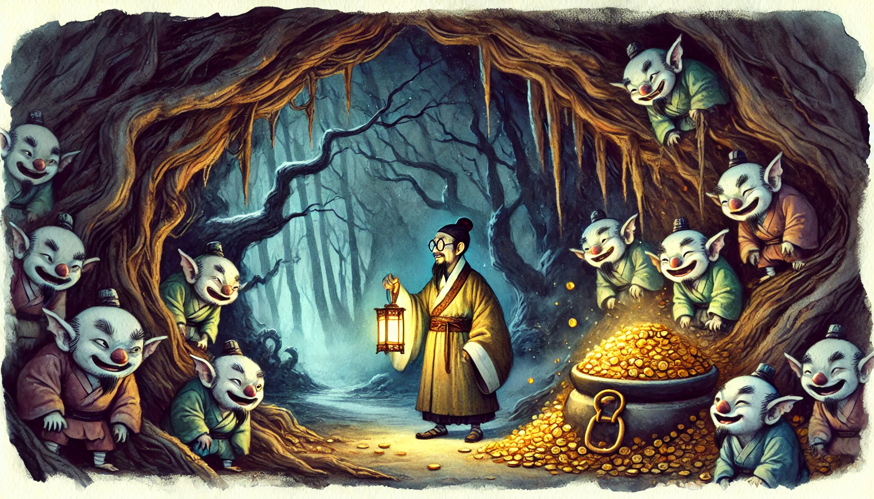 김 선비는 그 길로 동네잔치를 벌였습니다. 굶주린 이웃들에게 쌀을 나눠주고, 빚진 사람들의 빚을 갚아주고, 허물어진 다리를 고쳐주며 그 많은 재물을 좋은 일에 아낌없이 썼습니다. 김 선비는 평생을 떵떵거리는 부자로 살면서도, 겸손함을 잃지 않고 "이게 다 도깨비 형님 덕분이지" 하며 허허 웃었다고 합니다. 물론, 그 뒤로 다시는 도깨비가 찾아오는 일은 없었답니다. 도깨비 입장에서는 자기가 가장 끔찍한 복수를 했다고 믿고 있을 테니까요. 이게 바로 전화위복, 님도 보고 뽕도 따고, 도깨비도 쫓고 부자도 된 김 선비의 기가 막힌 이야기였습니다.