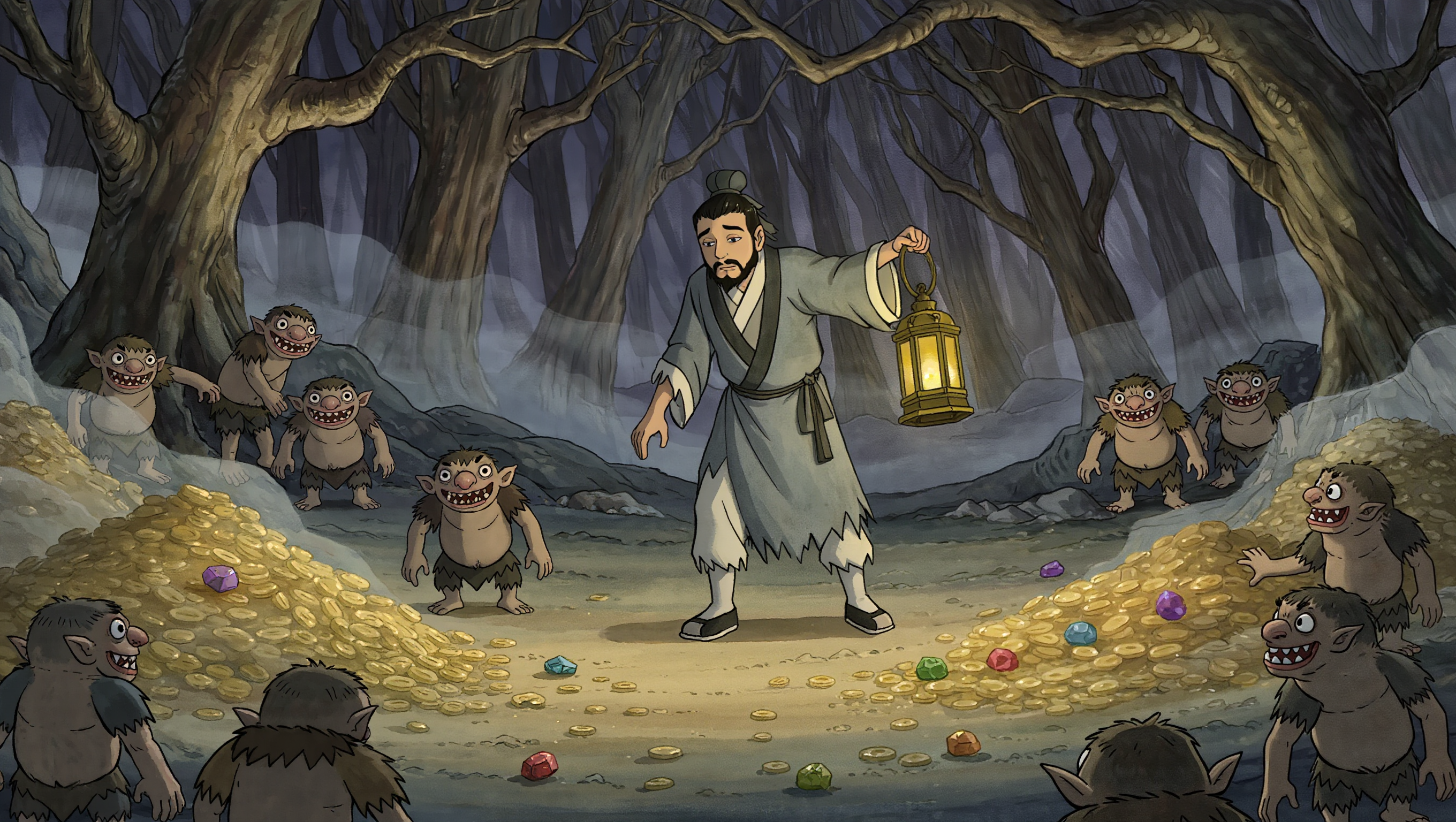 자, 김 선비 집 마당에 황금이 산처럼 쌓였으니 이제 행복 시작 불행 끝인 줄 아셨지요? 천만에요. 옛말에 공짜 치즈는 쥐덫 위에만 있다고, 도깨비가 준 황금에는 아주 고약한 이자가 붙어 있었습니다. 그날 밤부터 이놈의 도깨비 '형님'이 문지방이 닳도록, 아니 아주 문짝을 뜯어낼 기세로 매일 밤 찾아오는 겁니다.