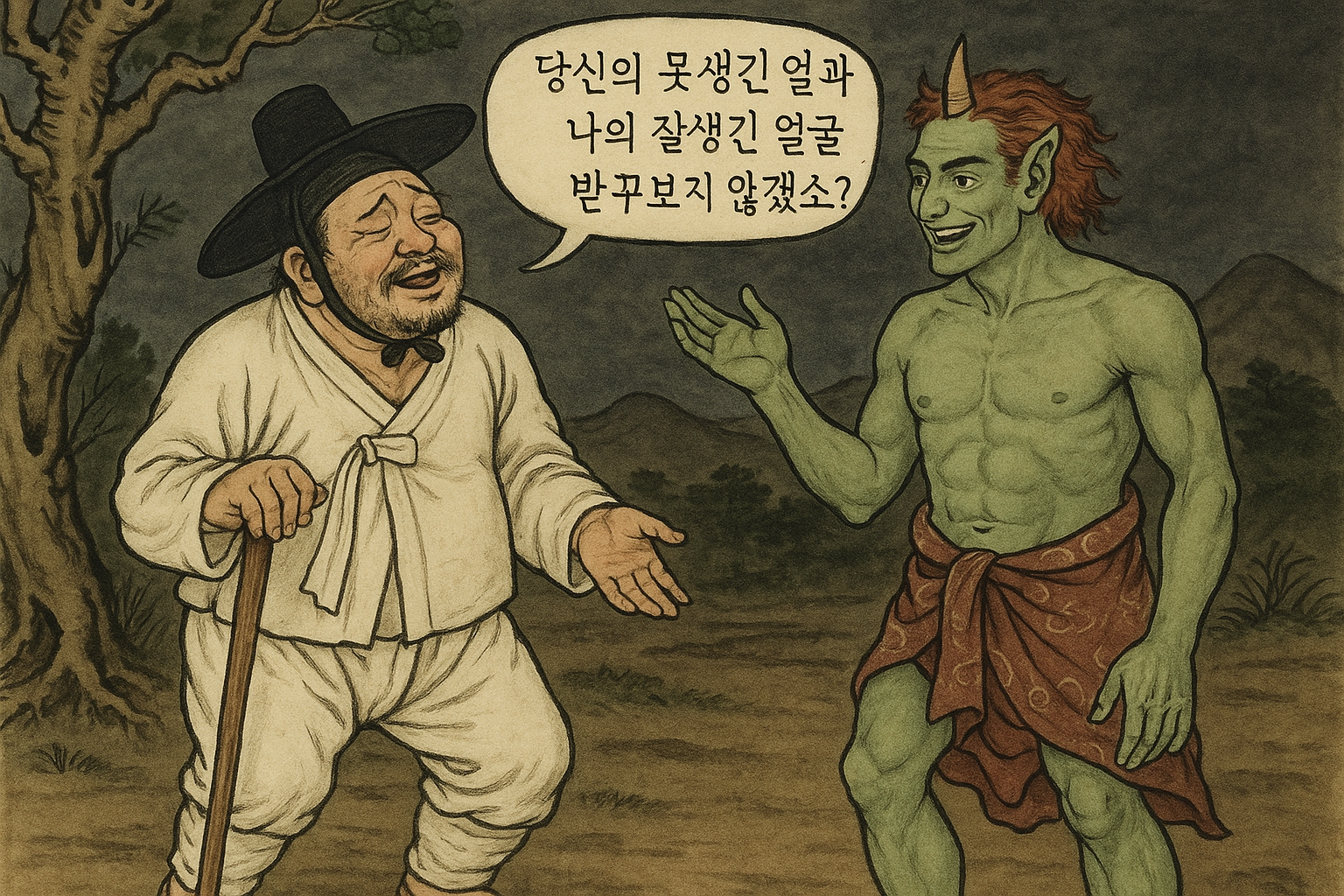 김 서방은 환하게 웃었다. 도깨비의 말이 맞았다. 진짜 중요한 건 얼굴이 아니라 마음가짐이었다.