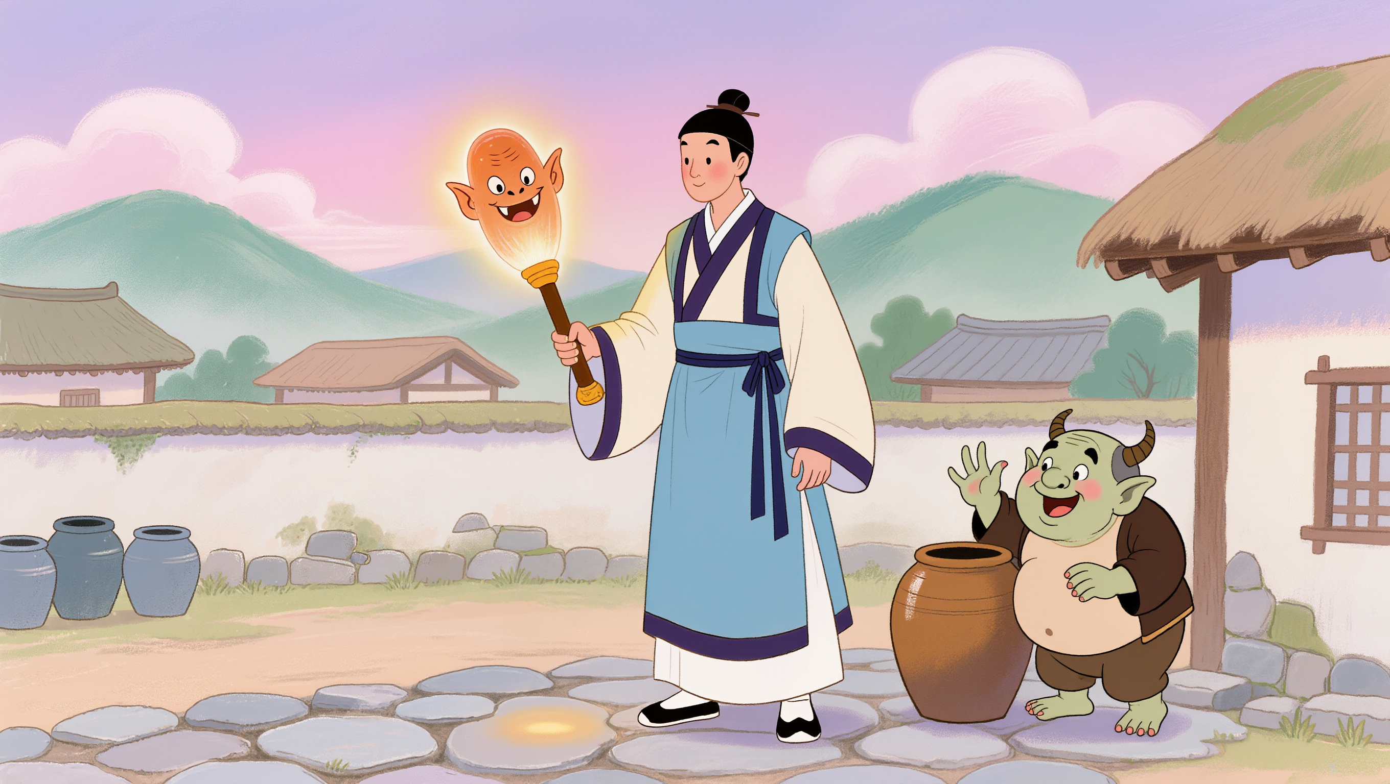 그리고 이것이 그 마을의 이야기였고, 도깨비 방망이가 인간이 되고, 양반이 빚을 갚고, 마을에 웃음꽃이 피었던 그 오래된 이야기의 끝이라고 해.