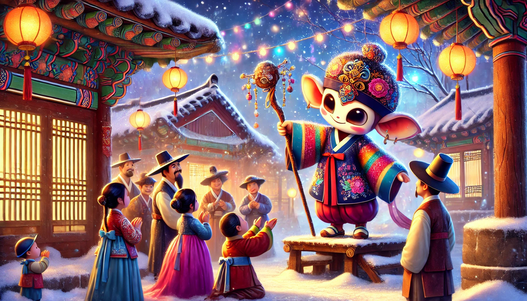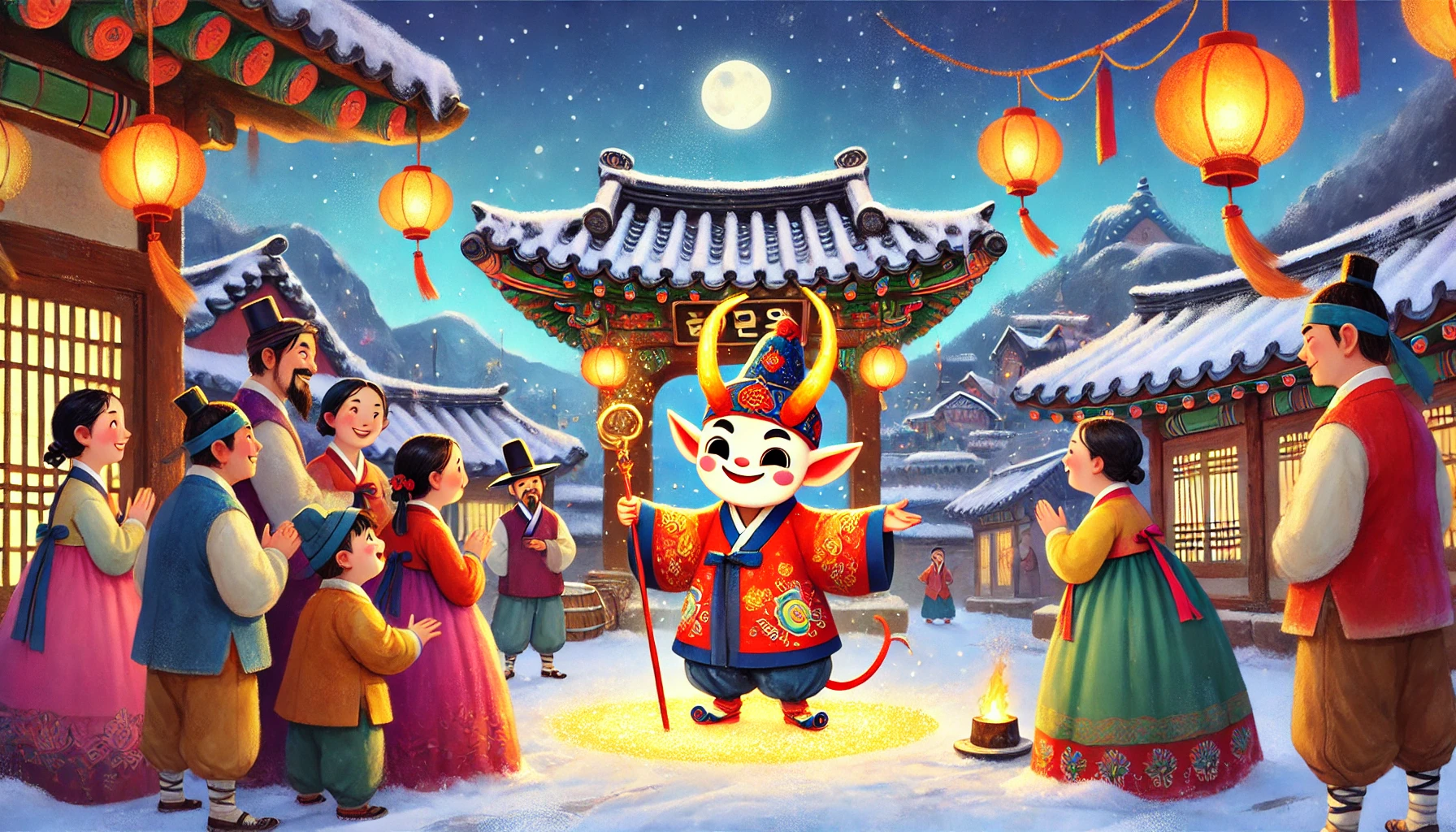 조선시대의 외딴 마을에 나타난 도깨비! 새해를 맞이한 마을 사람들에게 놀라운 새해 인사를 전하며 이루어진 기적 같은 이야기. 도깨비가 전하는 따뜻한 축복과 그 속에 숨겨진 교훈을 따라가 보세요.