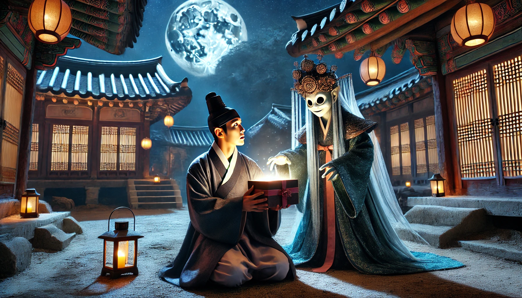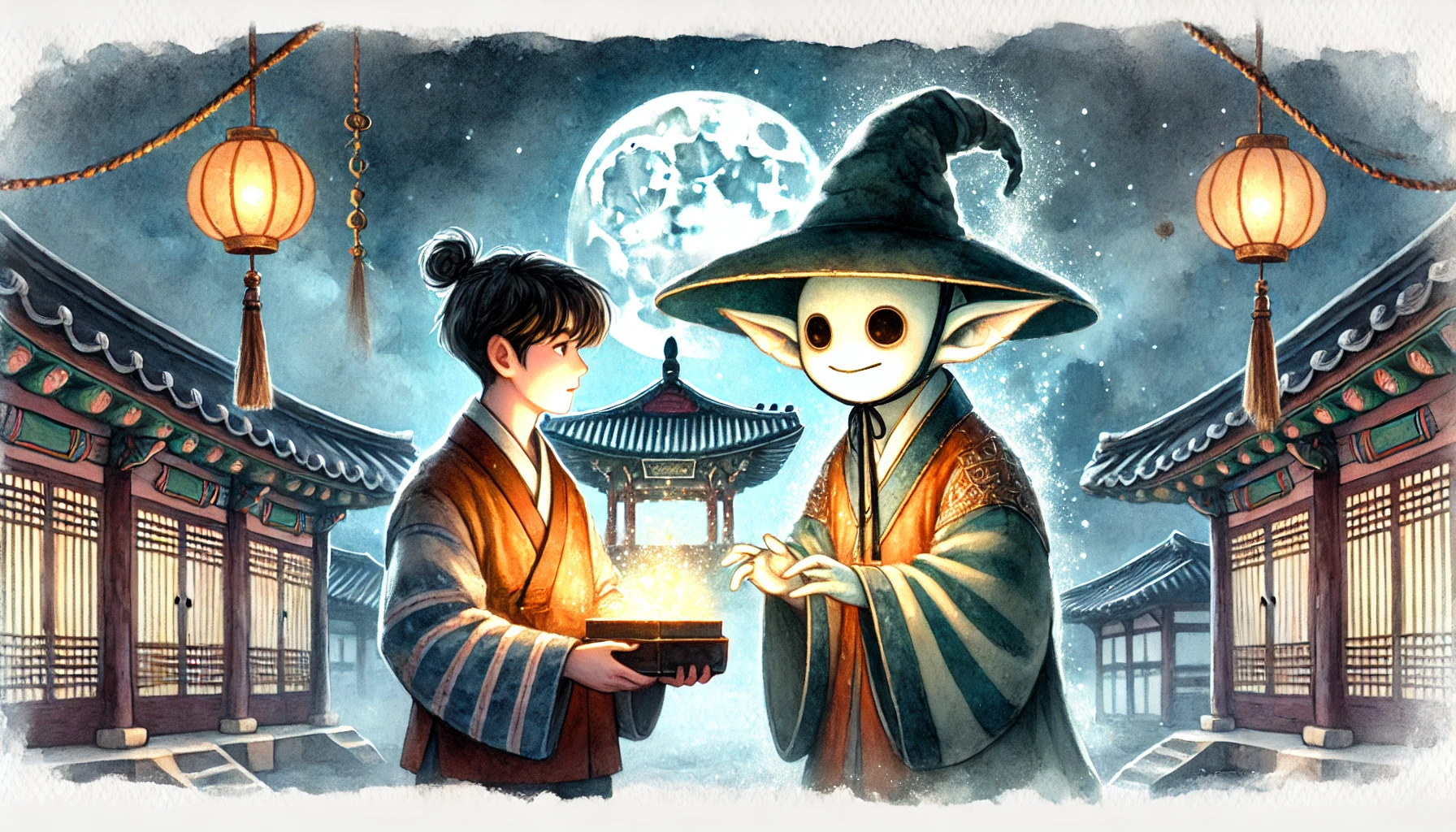 "여러분은 지금 '도깨비의 선물' 조선시대 야담을 들으셨습니다. 가난한 선비 이태식과 신비로운 도깨비의 만남, 그리고 그 선물이 가져온 인생의 변화와 깨달음을 담은 이야기였습니다.