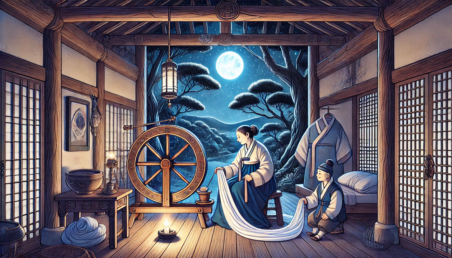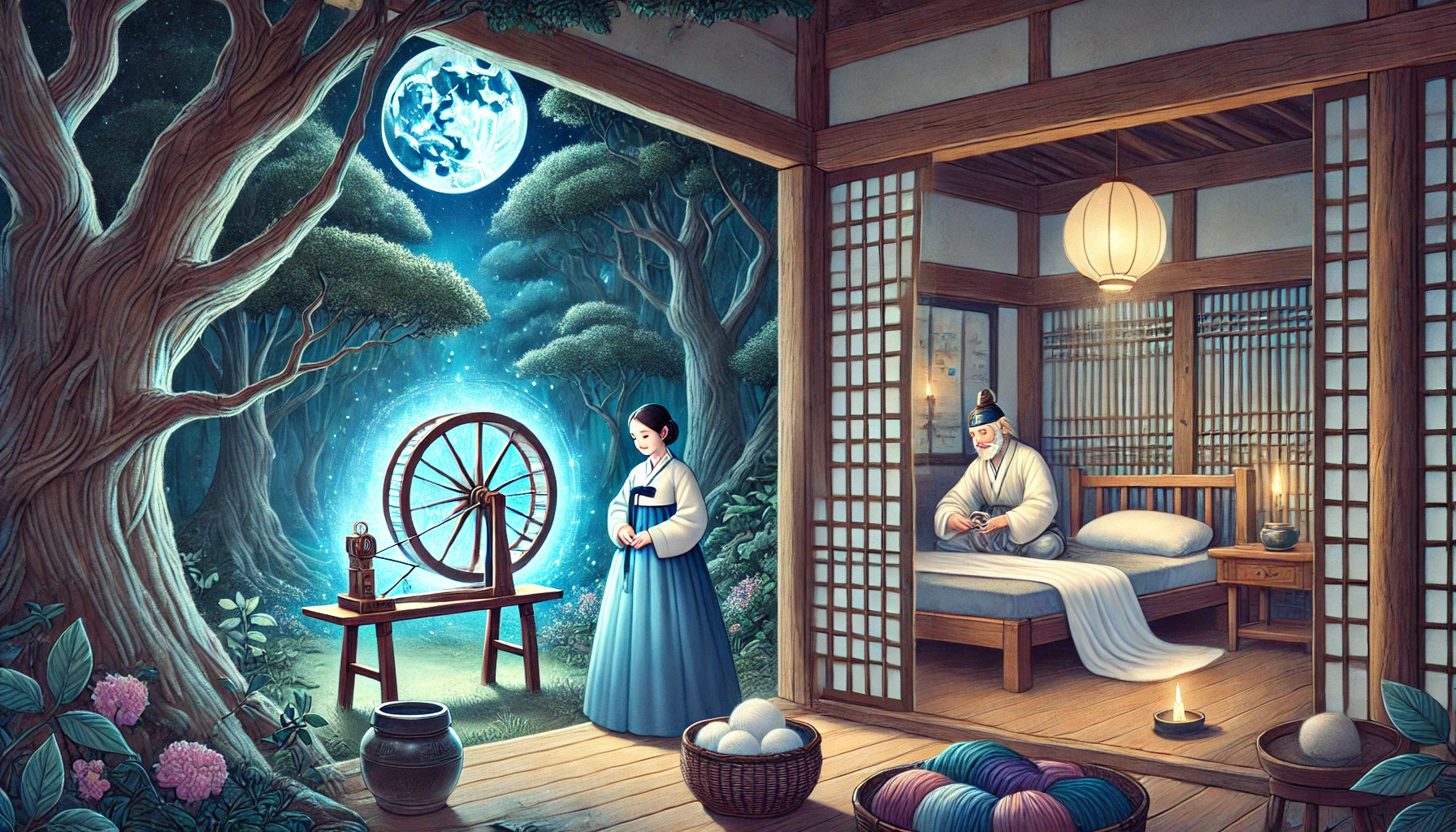 여러분, 오늘 들려드린 '도깨비 가락으로 물레 돌리는 노파: 하룻밤에 백 필의 천을 짠 비밀'은 어떠셨나요? 인간의 끝없는 욕심이 어떤 결과를 가져오는지, 그리고 우리가 가진 것에 만족하는 법을 배우는 것이 얼마나 중요한지 생각해 볼 수 있는 시간이었기를 바랍니다.