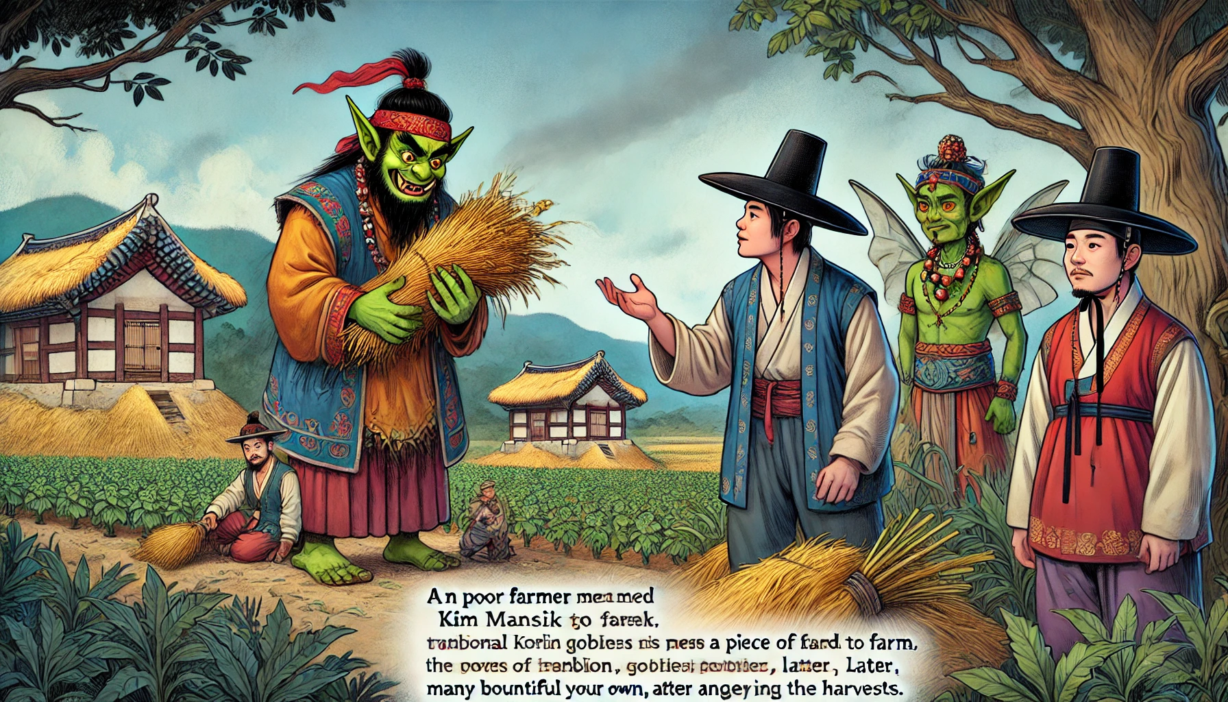 도깨비는 만식에게 다시 시선을 돌렸다. "네 아내의 간청으로, 너의 목숨과 가족은 살려주겠다. 하지만 네가 가진 모든 재산은 사라질 것이다. 그리고 다시는 이 땅에서 농사를 짓지 못할 것이다."