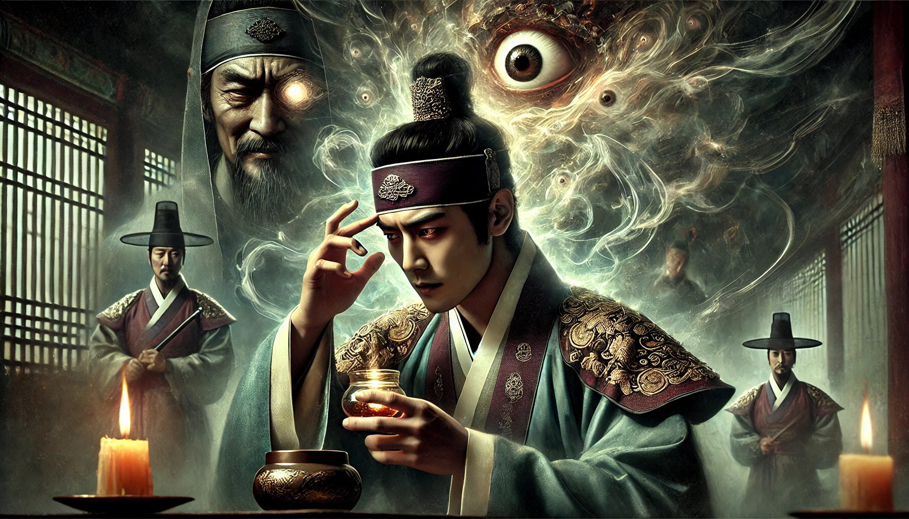 "내가... 보인다! 모든 것이... 너무 많아!" 박상궁은 미친 듯이 소리쳤습니다. "내가 부자가 되는 미래, 내가 몰락하는 미래, 내가 죽는 순간까지... 아아악! 멈춰! 이 광경들을 멈춰줘!"