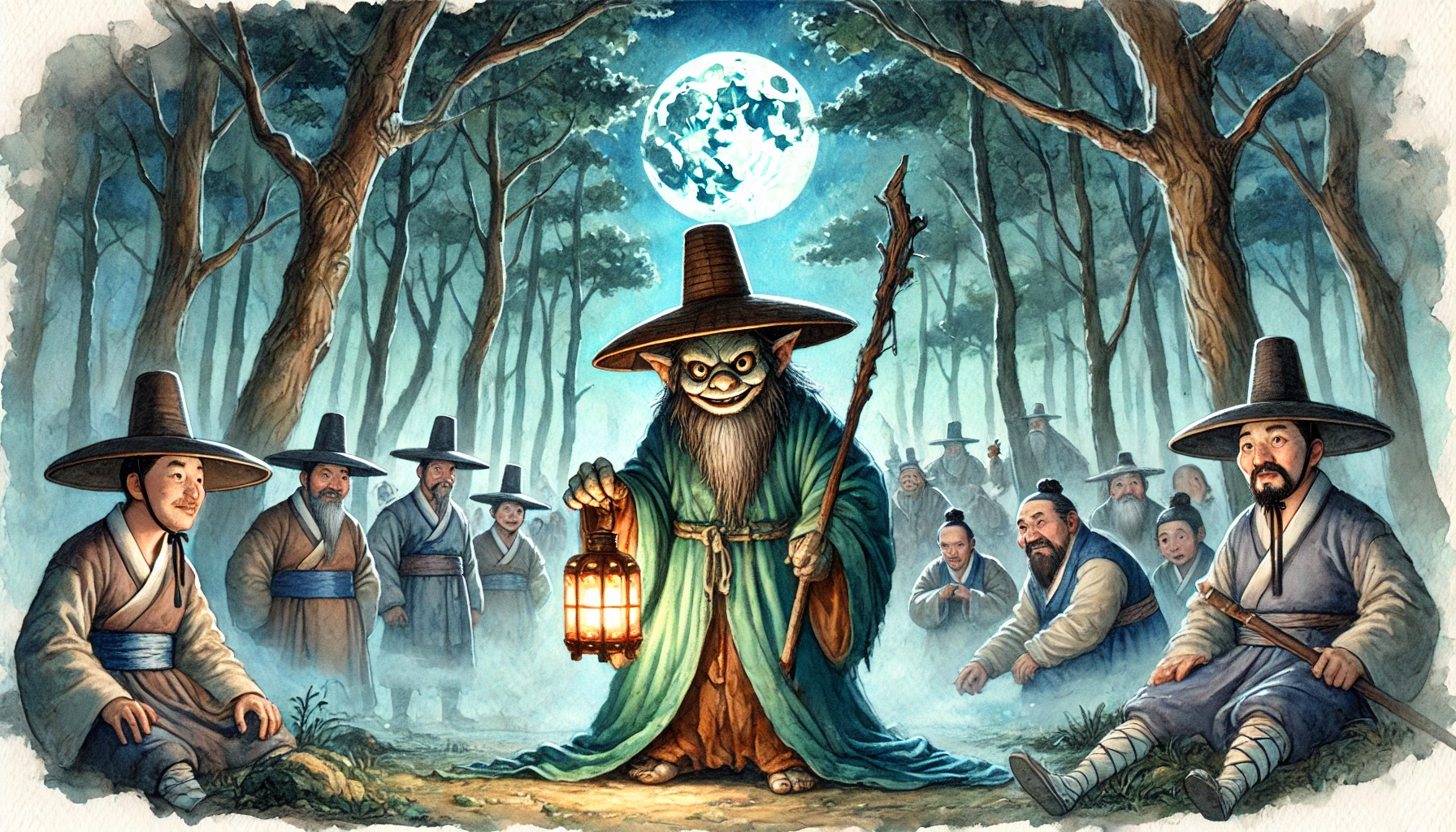 한양 근교의 한 주막에서 술을 마시던 노인은 젊은이들에게 도깨비 이야기를 들려주곤 했습니다. 그의 이야기를 들으며, 사람들은 위선적인 양반들이 도깨비에게 혼쭐이 나는 장면을 상상하며 소리 없는 웃음을 짓곤 했습니다.