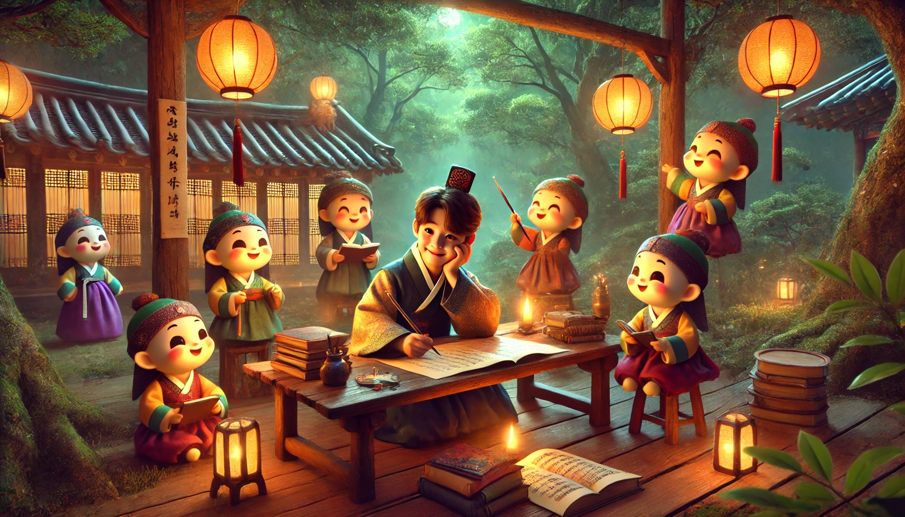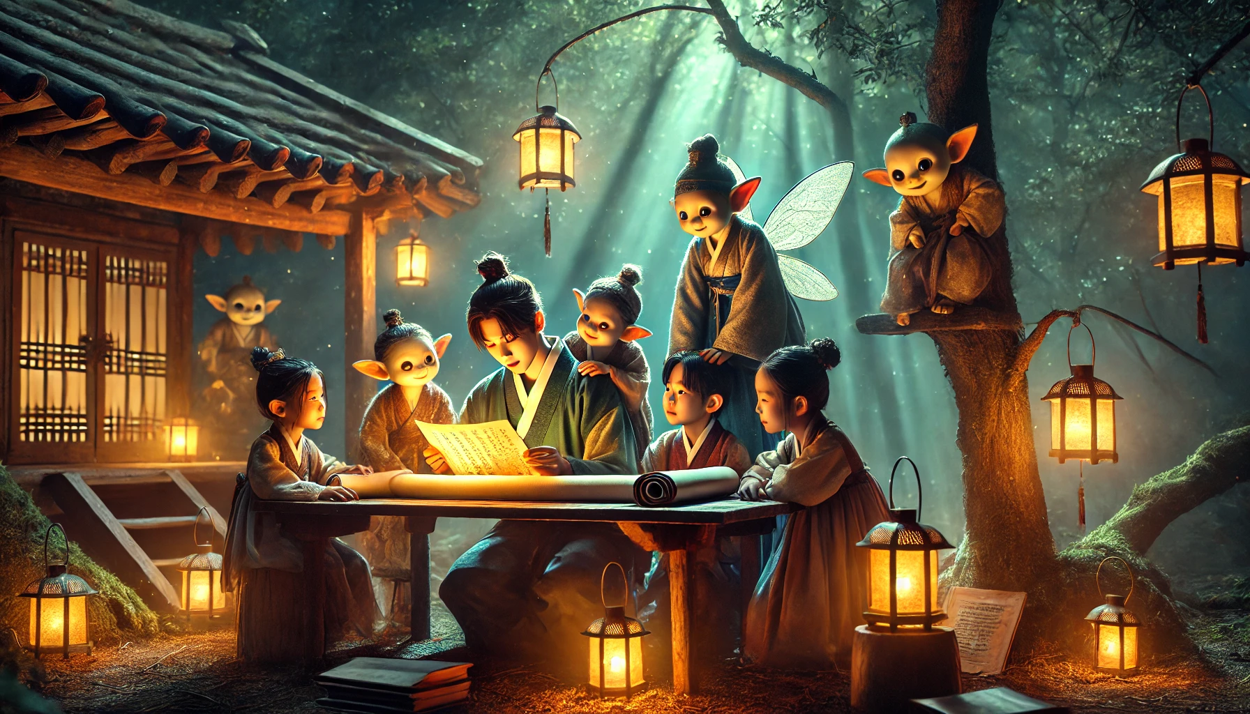 밤새 이어지는 신비한 공부. 이수린의 붓끝에서 나온 글자들이 방안을 날아다니고, 도깨비불은 마치 작은 등불처럼 그의 책상을 밝힌다.