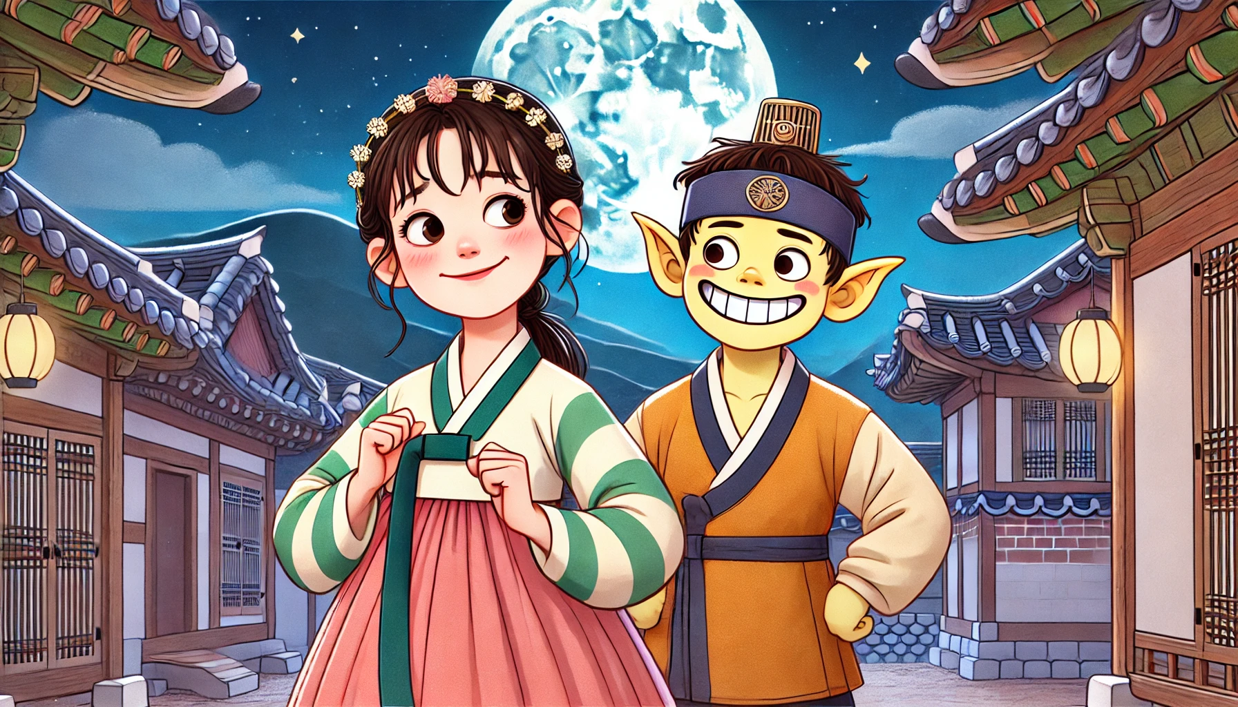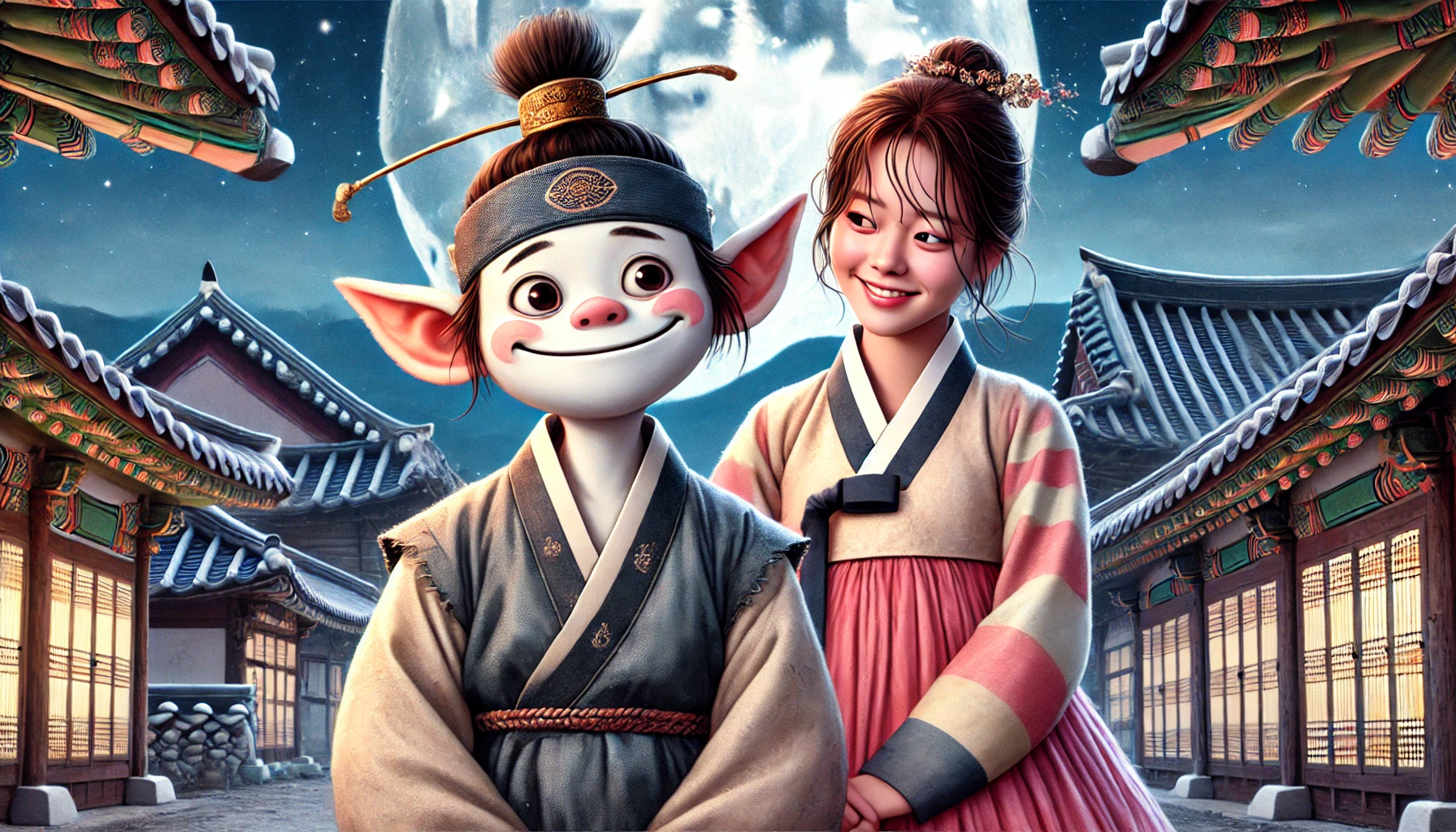 두 사람은 웃으며 서로를 끌어안았습니다. 비록 도깨비와 인간이라는 차이가 있었지만, 진정한 사랑 앞에서는 그런 것이 전혀 중요하지 않았습니다.
