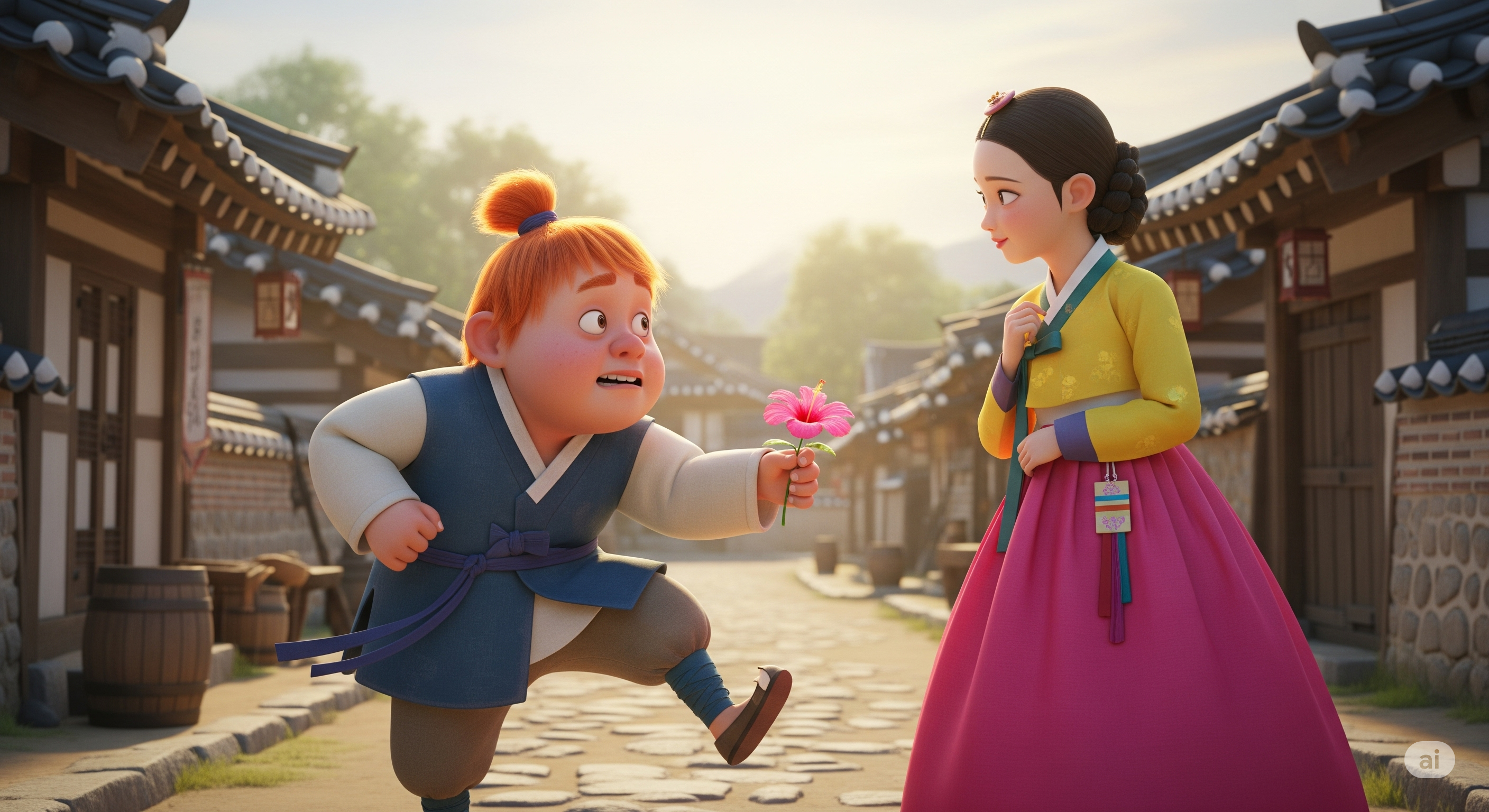 그런 옥순이를 매일 몰래 지켜보는 존재가 있었으니, 바로 마을 뒷산에 사는 도깨비 방실이였습니다. 방실이는 다른 도깨비들과 달리 사람을 놀리거나 해치는 것을 좋아하지 않는 순진한 도깨비였습니다. 게다가 겁이 많고 서툴러서 다른 도깨비들에게 놀림감이 되곤 했습니다.
