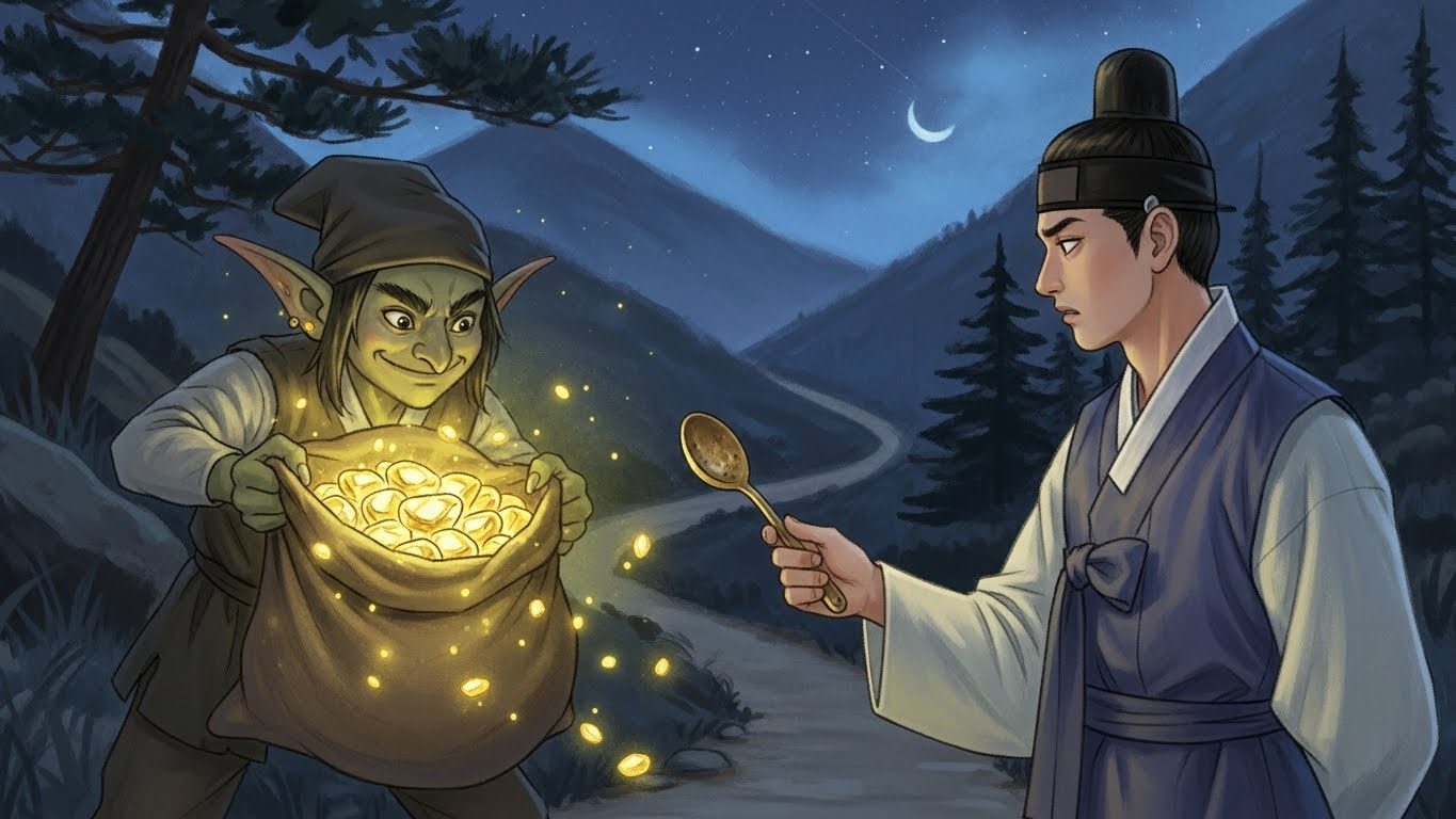 "어이구, 이 바보야! 그걸 그렇게 주면 어떡해!" 여러분, 혹시 주변에 너무 착해서 바보 소리 듣는 사람 보신 적 있으신가요? 오늘 주인공 '득칠이'가 딱 그런 사람이었습니다. 남들이 시키는 대로 다 하고, 제 몫도 못 챙기는 이 멍청한 머슴을 보고 있자니, 지나가던 도깨비조차 혀를 찼다지요. 처음엔 그저 괴롭히고 골려줄 생각으로 접근했던 도깨비였는데, 글쎄 이 바보 같은 득칠이의 순수함에 도깨비가 오히려 홀딱 빠져버리고 말았습니다. 골려주려고 내민 손이 어느새 득칠이의 눈물을 닦아주고, 뺏으려던 떡 하나가 오히려 도깨비의 전 재산이 되어 돌아가는 기막힌 사연! 대체 도깨비는 왜 제 실속도 못 차리고 이 바보 머슴을 위해 자신의 모든 것을 내던지게 된 걸까요? 무서운 도깨비가 아니라, 세상에서 가장 황당하고도 따뜻한 도깨비의 희생 이야기를 지금 바로 공개합니다. 끝까지 듣지 않으시면 이 도깨비가 밤에 여러분 꿈속으로 찾아가 씨름하자고 할지도 모릅니다! 자, 이제 시작합니다!