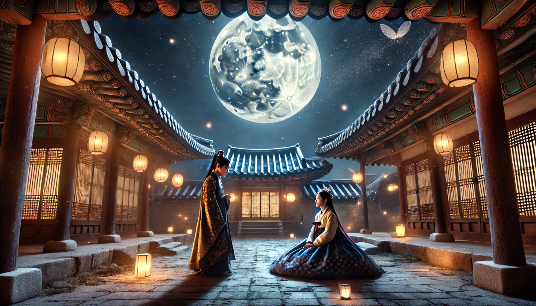 "낭자께 무례를 범하려는 것이 아닙니다. 다만 이렇게 아름다운 달밤에 혼자 달을 바라보는 낭자의 모습이 너무나 고상하여, 감히 인사를 드리고 싶었을 뿐입니다."