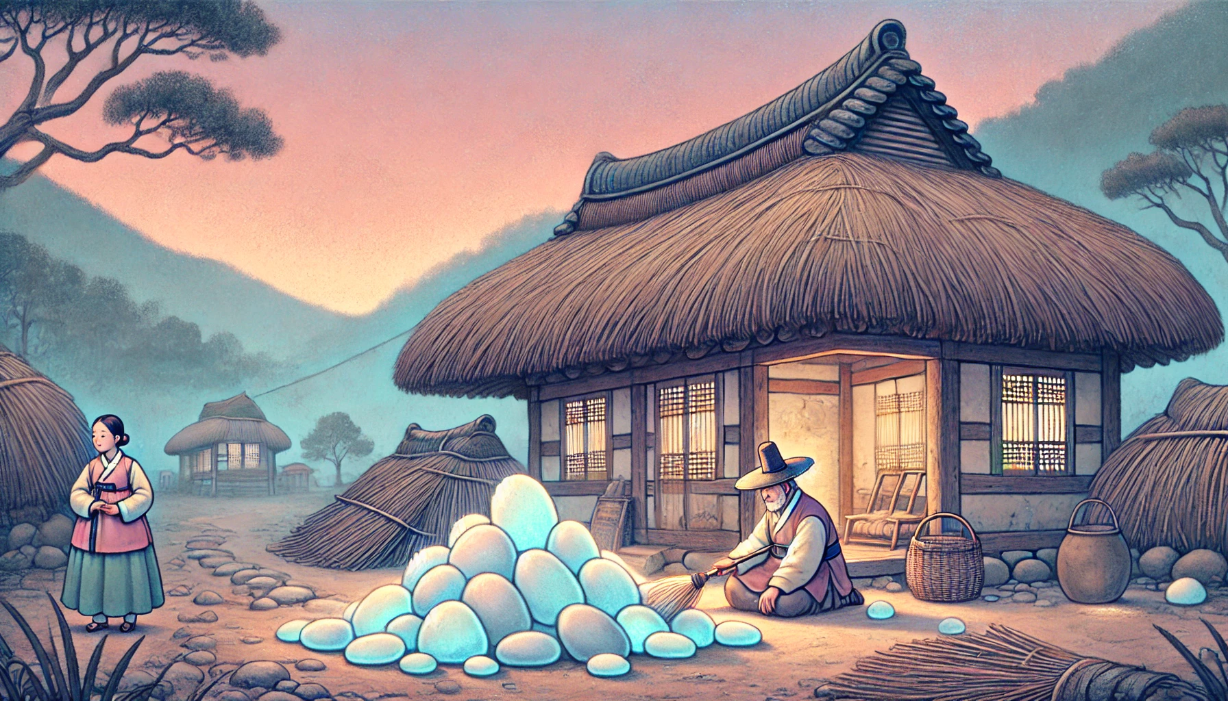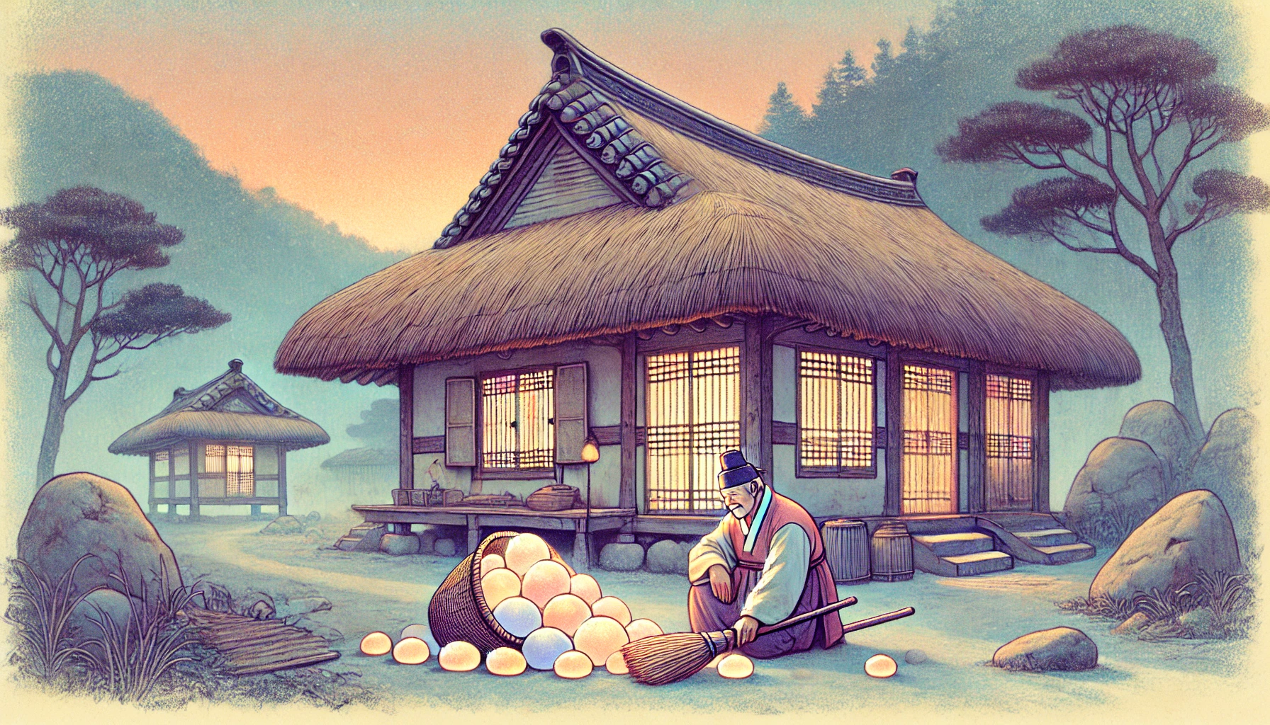 박 영감은 그런 수군거림에도 아랑곳하지 않았습니다. 오히려, 밤마다 들려오는 그 돌멩이 소리가, 이제는 적적한 밤의 '말동무'처럼 느껴지기까지 했습니다. "허허, 이놈아. 내일은 좀 살살 던져라. 늙은이 팔다리가 쑤셔서, 내일 아침에는 못 쓸어주겠다." "타다다닥!" 도깨비는, 마치 '알았다'는 듯이, 더 요란하게 돌을 던졌습니다. 그 누구도 몰랐습니다. 이 지긋지긋하고 몹쓸 장난 속에, 하늘이 내린 '횡재(橫財)'가 숨어있을 줄은 말입니다.