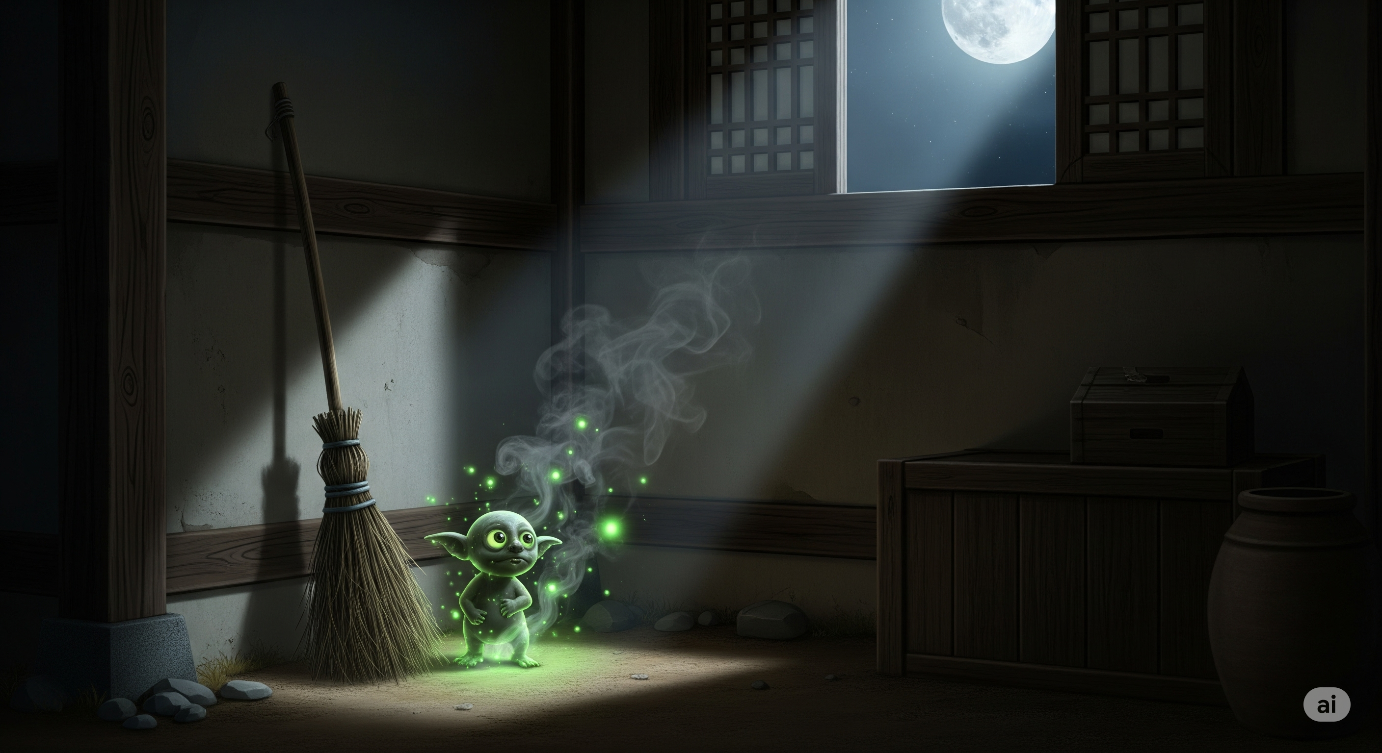 도깨비는 의외로 친근한 목소리로 말했다. 생김새도 무섭지 않았다. 작은 키에 동그란 눈, 그리고 빗자루 형태를 유지하면서도 어딘가 귀여운 모습이었다.