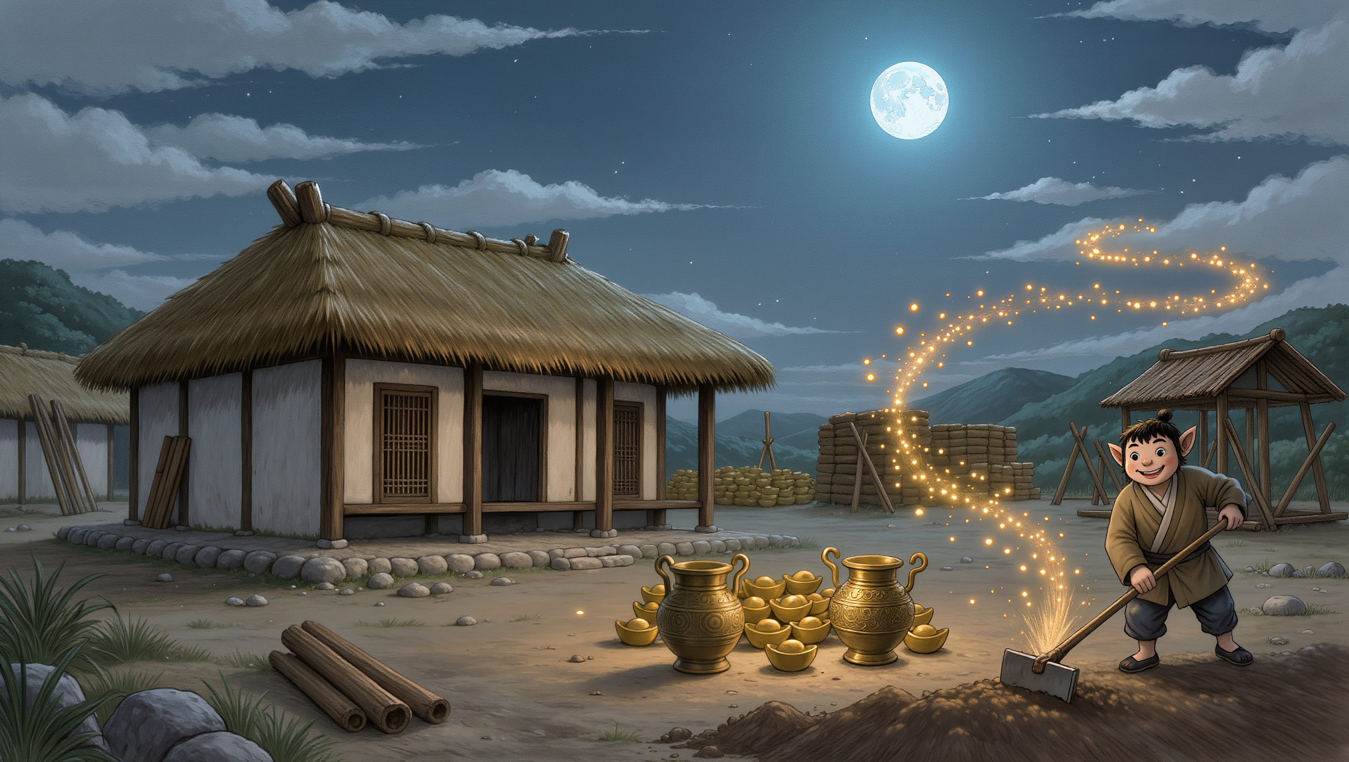 도깨비가 자세히 설명을 이어갔습니다. "제가 가져오는 것들은 모두 버려지거나 잃어버린 것들입니다. 사람들이 실수로 길에 떨어뜨린 곡식 자루, 홍수에 떠내려가다 강가에 걸린 나무, 오래전에 주인을 잃어 땅속에 묻혀 있던 돈 같은 것들입니다. 도깨비는 그런 것들이 어디 있는지 알 수 있는 능력이 있습니다. 저는 그것들을 찾아 모아 나리께 드리는 것입니다. 만약 주인이 있는 것이라면, 혹은 누군가 다시 찾으러 올 것 같은 것이라면 절대 손대지 않습니다." 김진사는 비로소 완전히 안심했습니다. 그리고 더욱 도깨비를 신뢰하게 되었습니다. 이 도깨비는 힘만 센 것이 아니라 마음씨까지 바른 존재였던 것입니다.