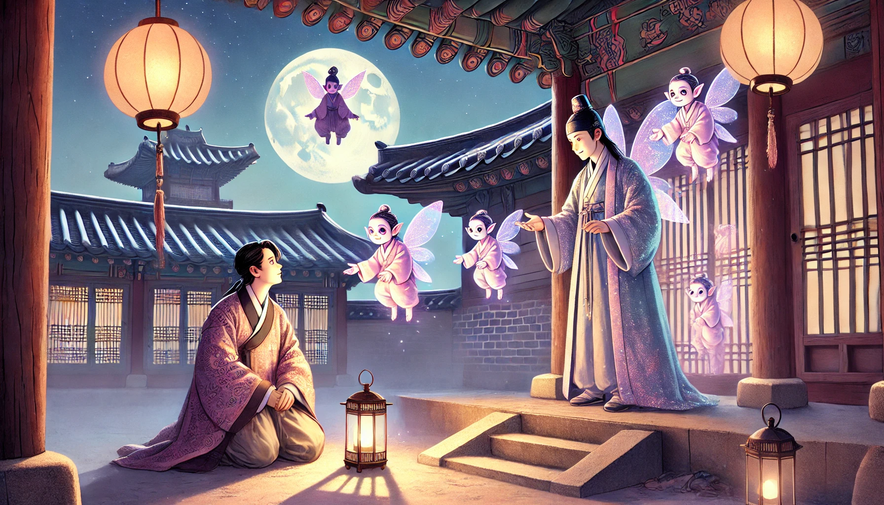 그리고 달빛이 유난히 밝은 밤이면, 산신령의 모습이 멀리서 강 부자의 저택을 바라보며 미소 짓는 것이 보인다고 합니다. 욕심쟁이 부자가 깨달음을 얻어 마을의 보물이 된 이야기는, 지금도 이 땅 어딘가에서 전해 내려오고 있지요.