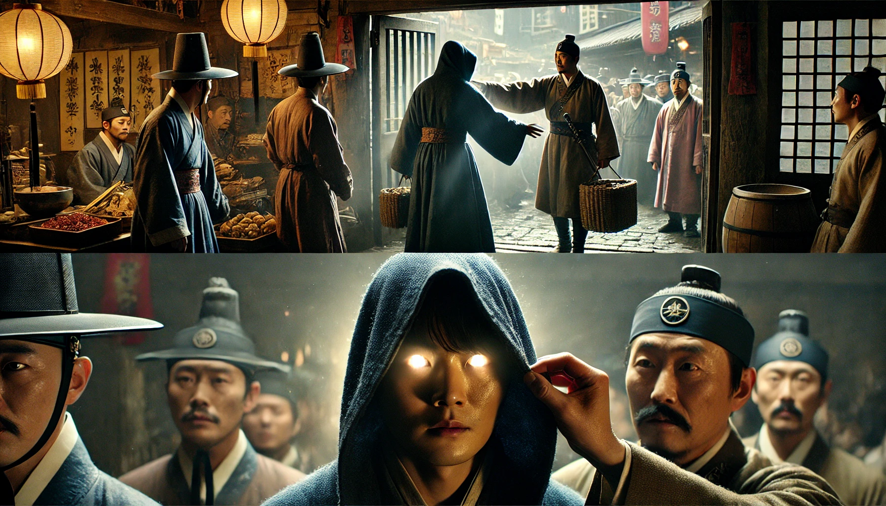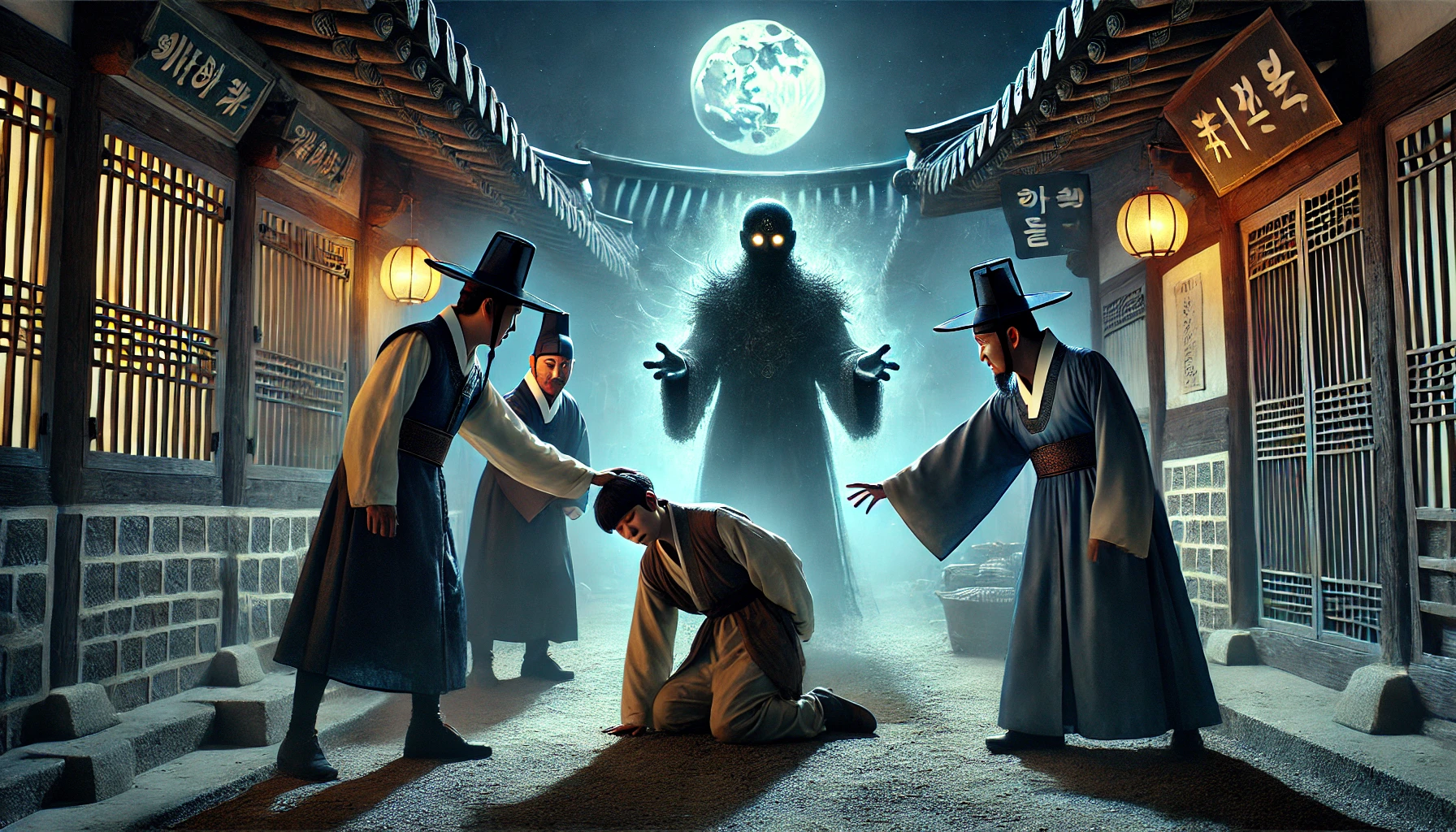 그 순간, 하늘이 갑자기 어두워졌고, 이상한 바람이 불기 시작했다. 마을 사람들과 포졸들은 공포에 질려 주위를 둘러보았다.