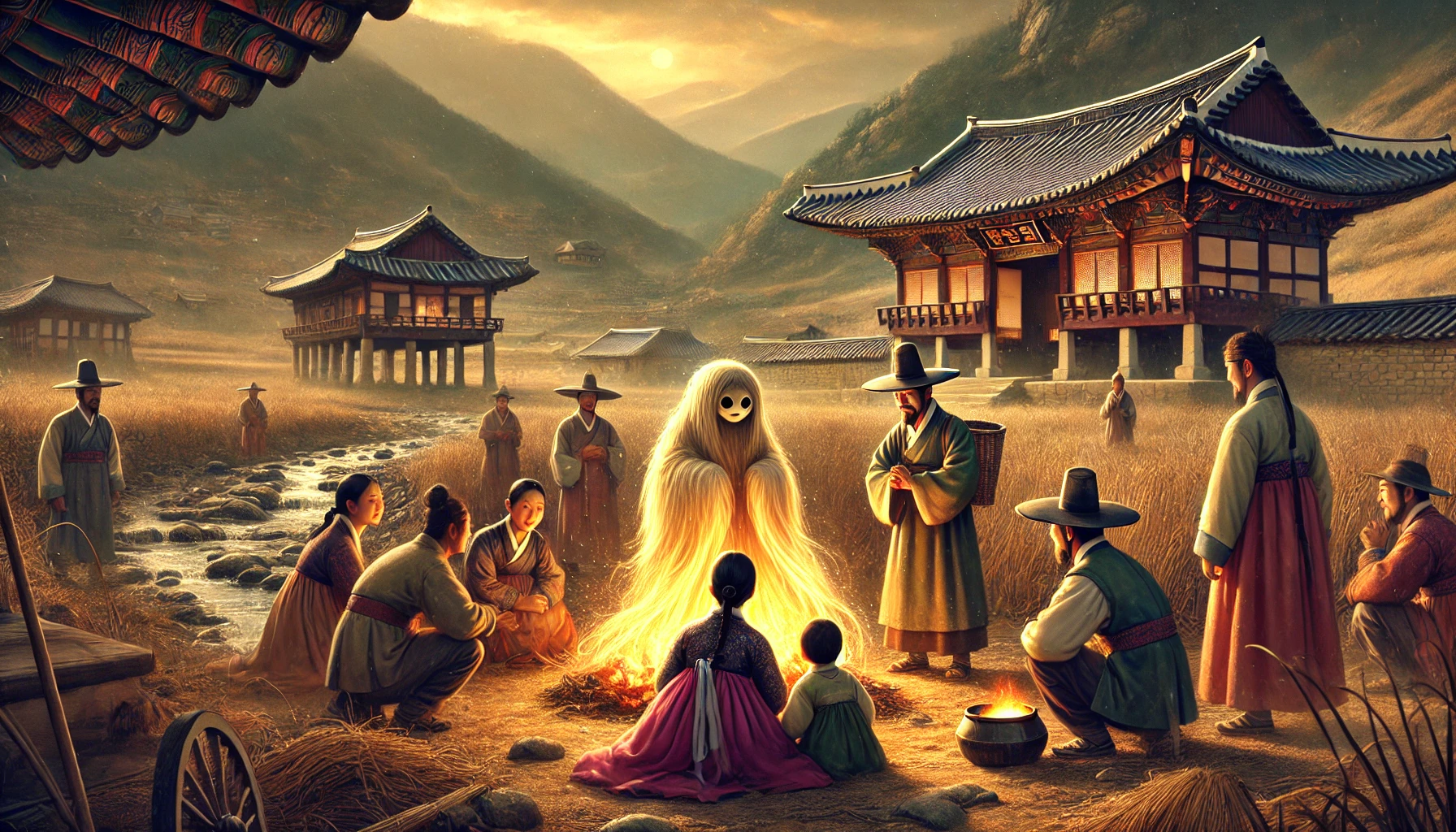 깊은 산자락에 안긴 작은 마을 위로 짙은 먹구름이 드리워져 있었습니다. 영조 시대, 세 해 동안 이어진 가뭄은 땅의 생명력을 앗아갔고, 논과 밭은 바싹 메말라 깊은 균열이 가득했습니다. 농작물이 자랄 기미조차 보이지 않았고, 마을 사람들의 얼굴에는 근심이 깊게 패여 있었습니다. 아이들의 웃음소리는 사라진 지 오래였고, 마을 전체가 무거운 침묵에 잠겨 있었습니다.