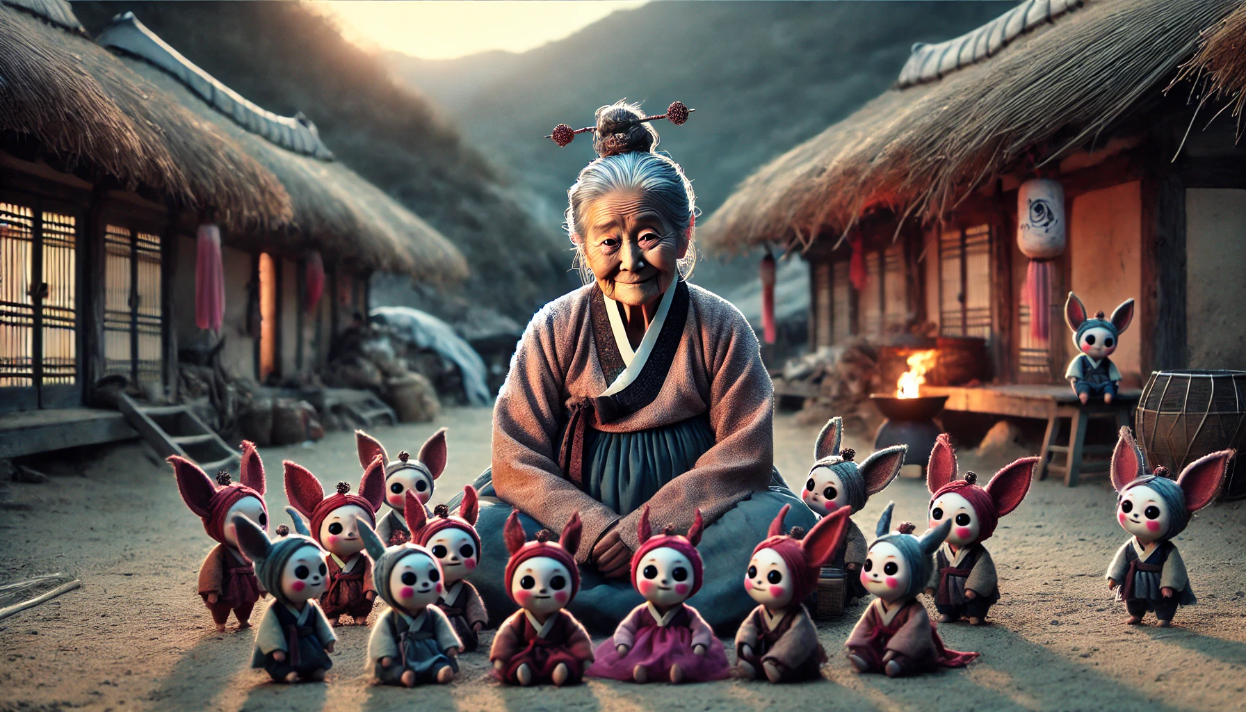 하지만 할머니는 모르고 계셨어요. 그 나그네가 떠난 후, 할머니의 집 주변 숲속에서 작은 눈동자들이 반짝이며 할머니를 지켜보고 있다는 것을 말이에요. 그들은 평범한 존재가 아니었습니다. 바로 이 깊은 산에서 오랫동안 살아온 도깨비들이었지요.