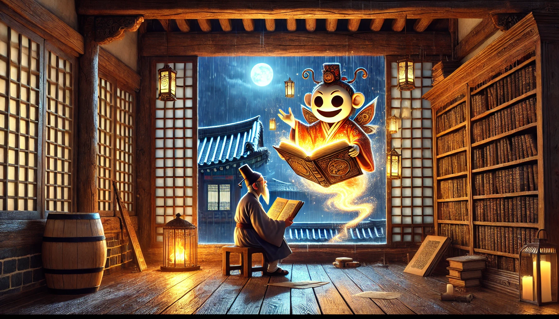 #조선시대, #야담, #도깨비, #책, #서재, #선비, #밤, #비바람, #마을, #기묘한일, #초자연현상, #전설, #귀신이야기, #옛이야기, #한밤중, #학자, #책장, #비밀, #신비, #오래된책
