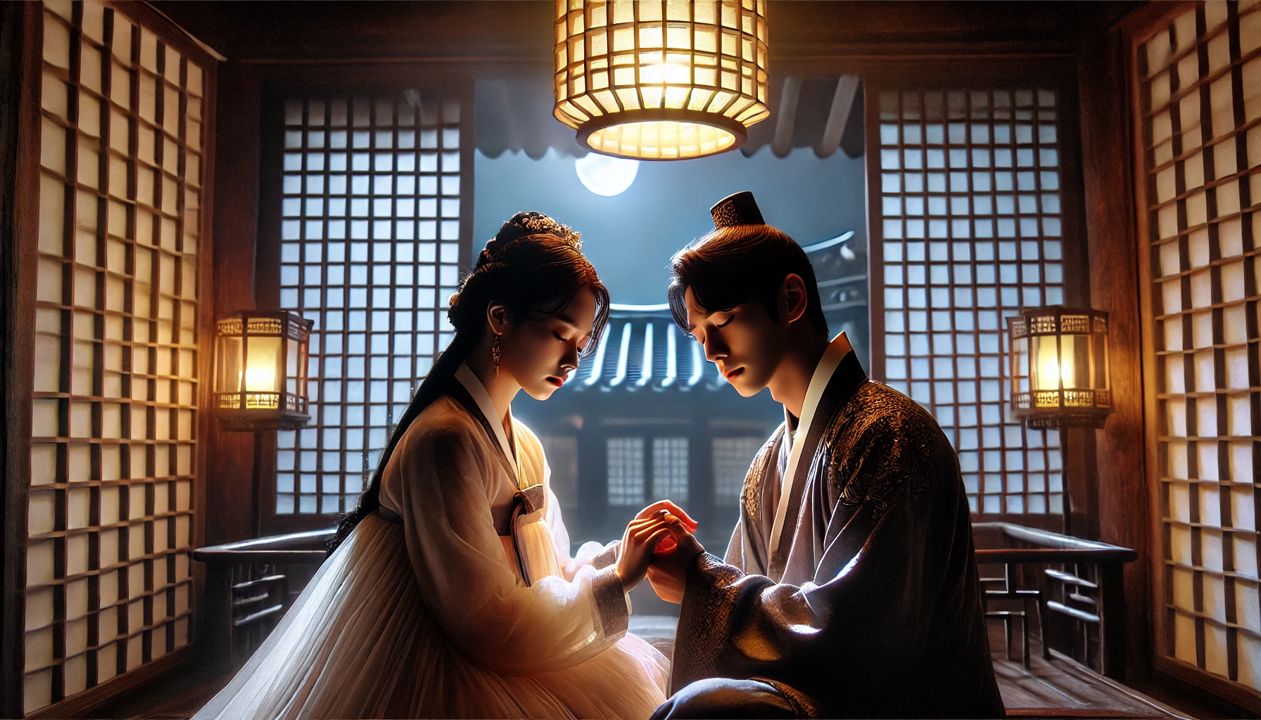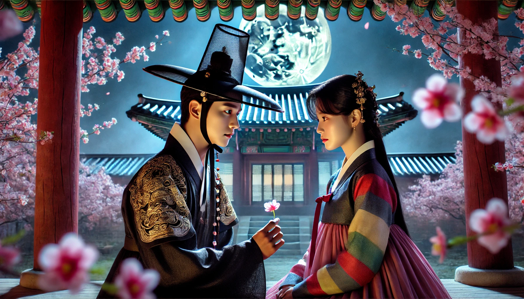 춘향의 속삭임에 몽룡은 그녀를 더 강하게 껴안았다. 그것은 단순한 포옹이 아니었다. 그의 온 마음을 담은 약속이었다.